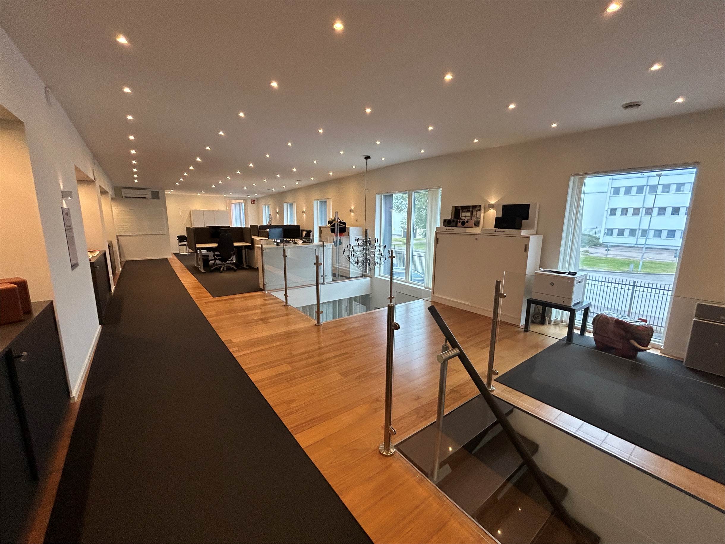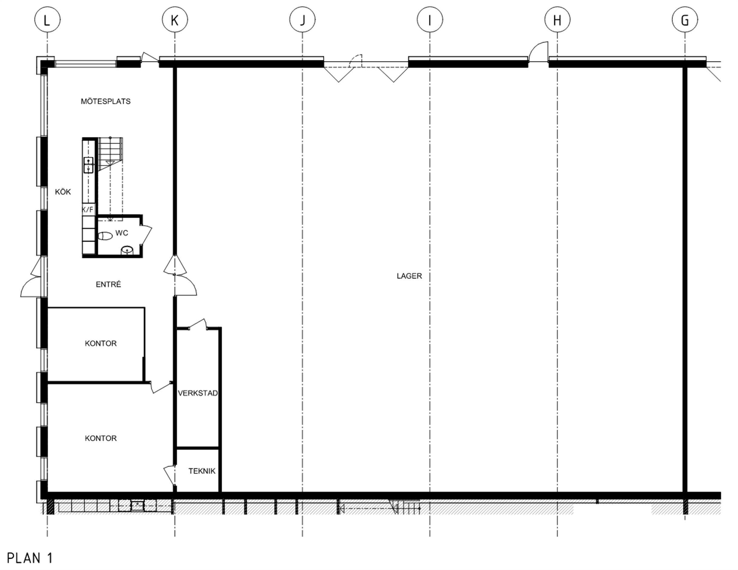 Lagerlokal med tillhörande kontorsdel i två planLokalen erbjuder en funktionell och modern planlösning för en effektiv arbetsmiljö.