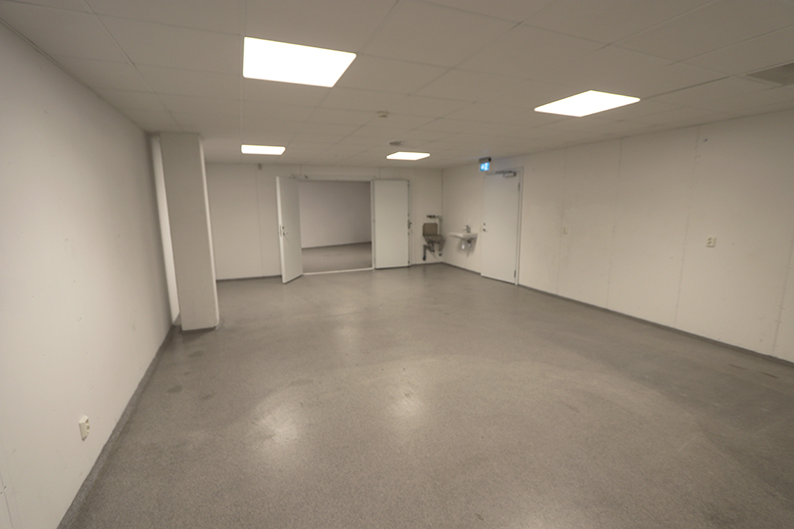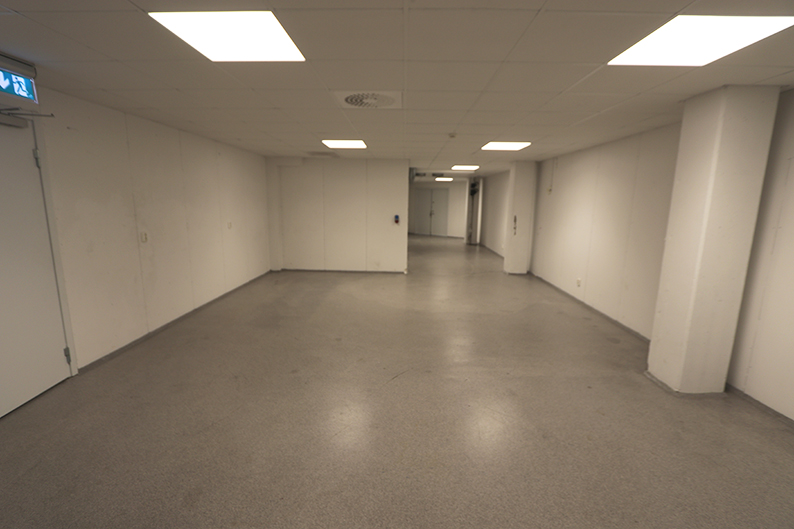 Det går också att nå lokalen via hiss eller trappa upp från byggnadens varmparkeringsgarage i källarplan.