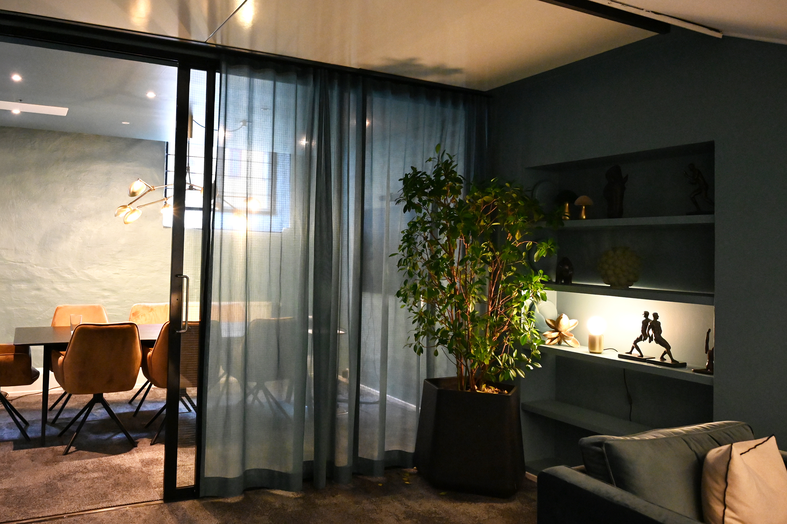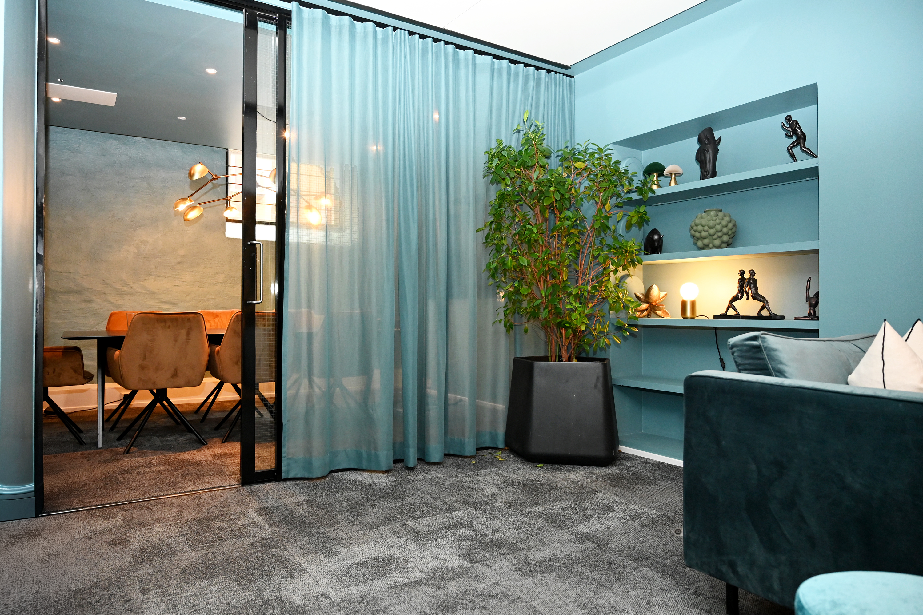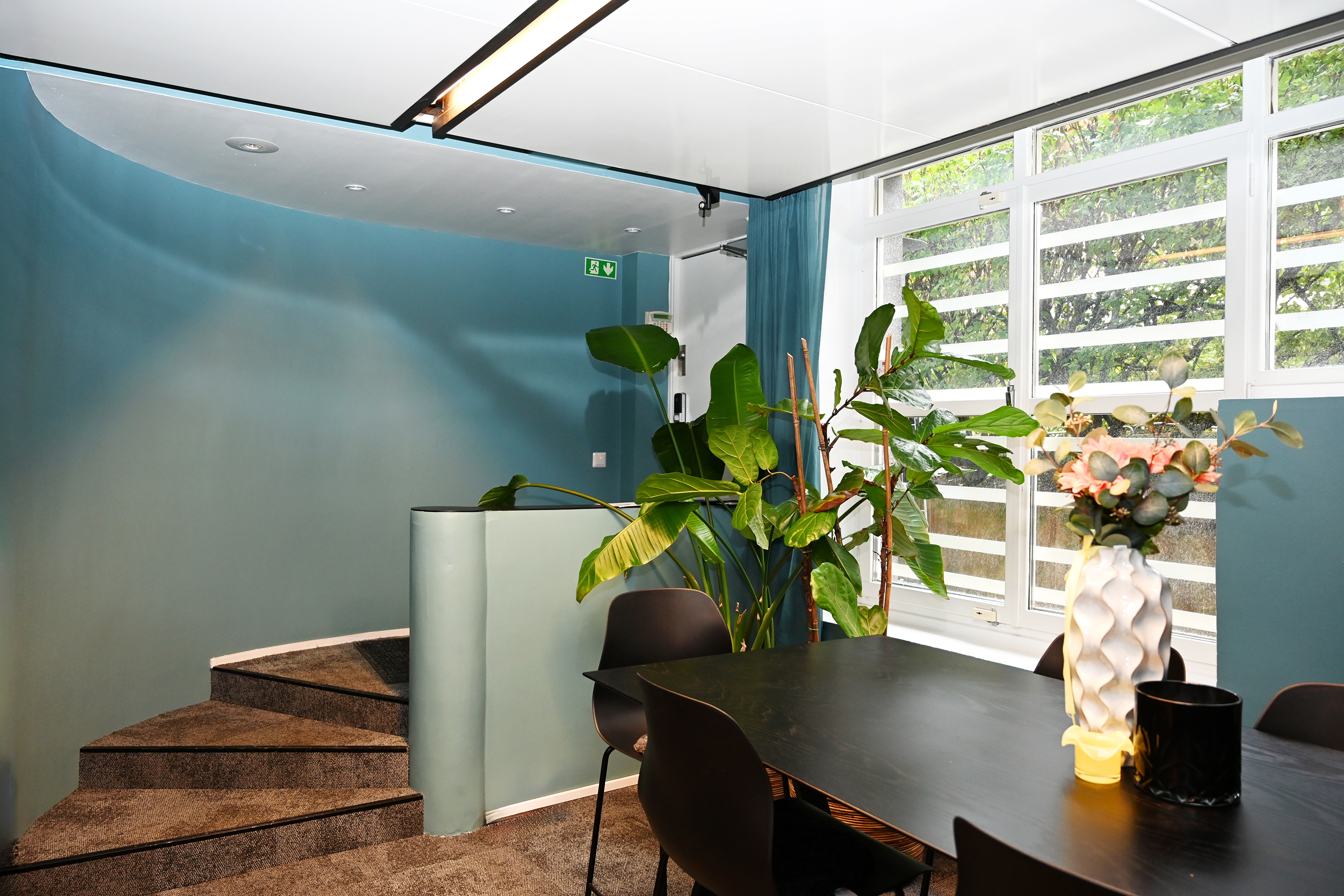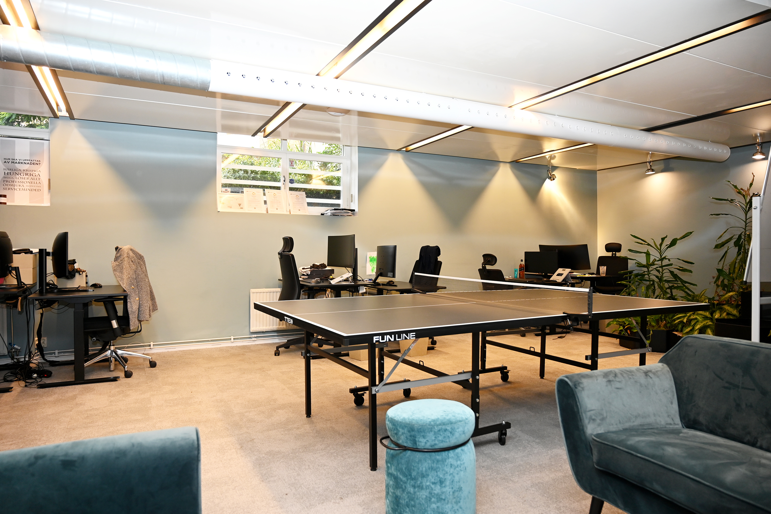 Öppen planlösning med plats för många arbetsplatser. Lokalen har en egen entré från innergården med en stor välkomnande loungedel invid pentryt. I lokalen finns även ett mötesrum för 6-8 pers samt WC och förråd.