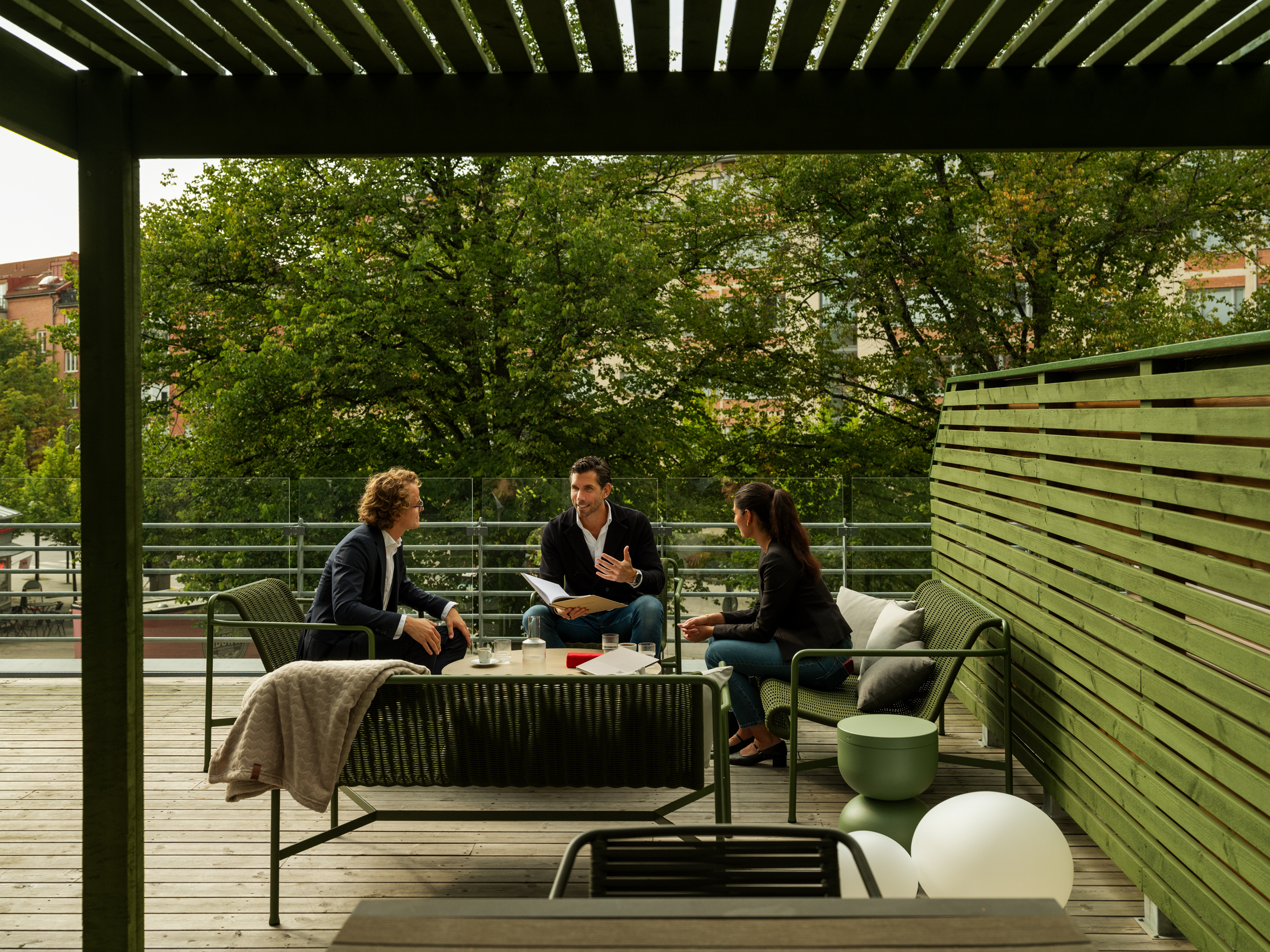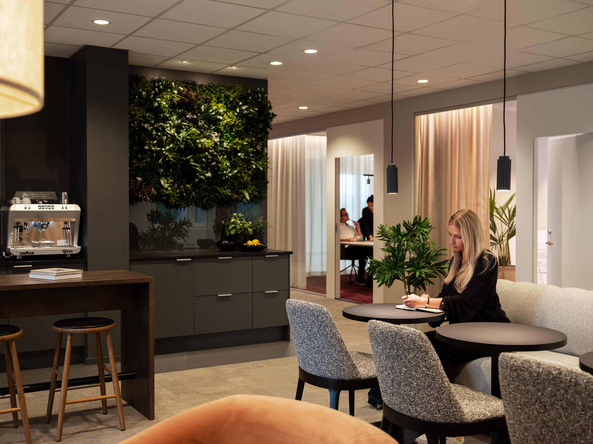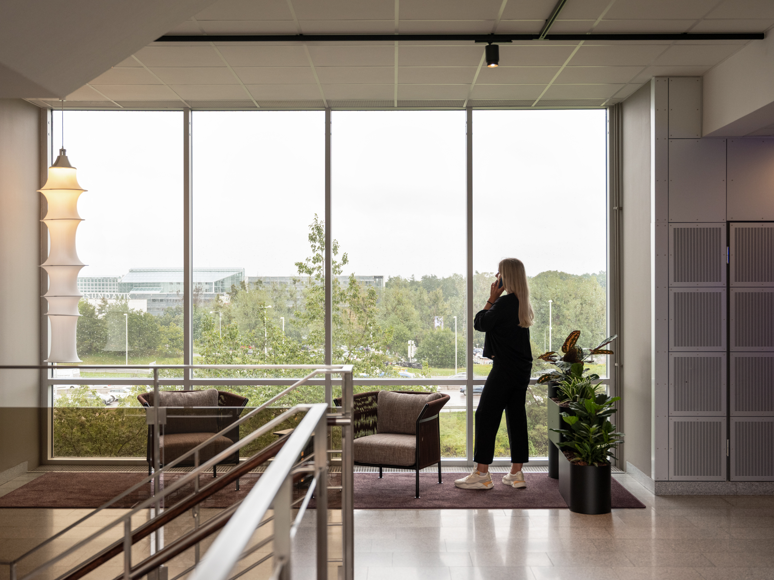 Närmast av allt ligger husets egen trivselcentral, ett trevligt café med lunchalternativ i gatuplan där det alltid doftar nybakat. Precis utanför dörren ligger dessutom Frösundas egen piazza – ett mysigt torg med parkkänsla. Perfekt för en skön paus i solen under arbetsdagen eller kreativa möten med himmelshögt i tak. Eller varför inte en trevlig AW med kollegorna för att avrunda arbetsveckan på bästa sätt?
