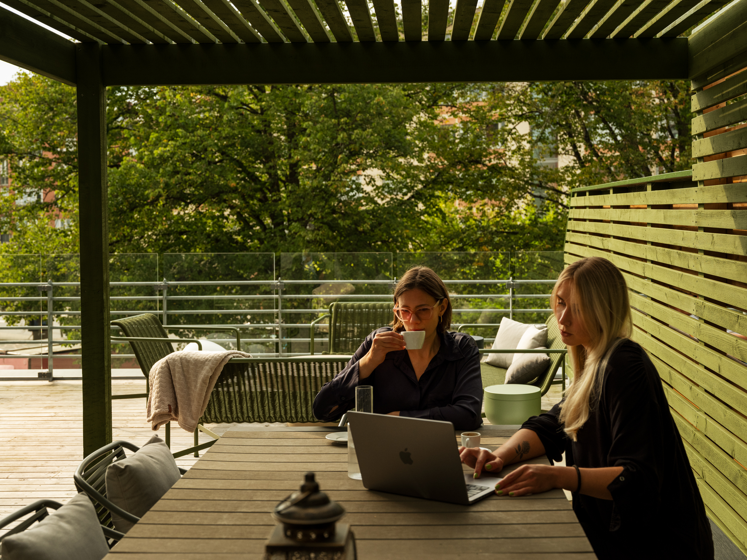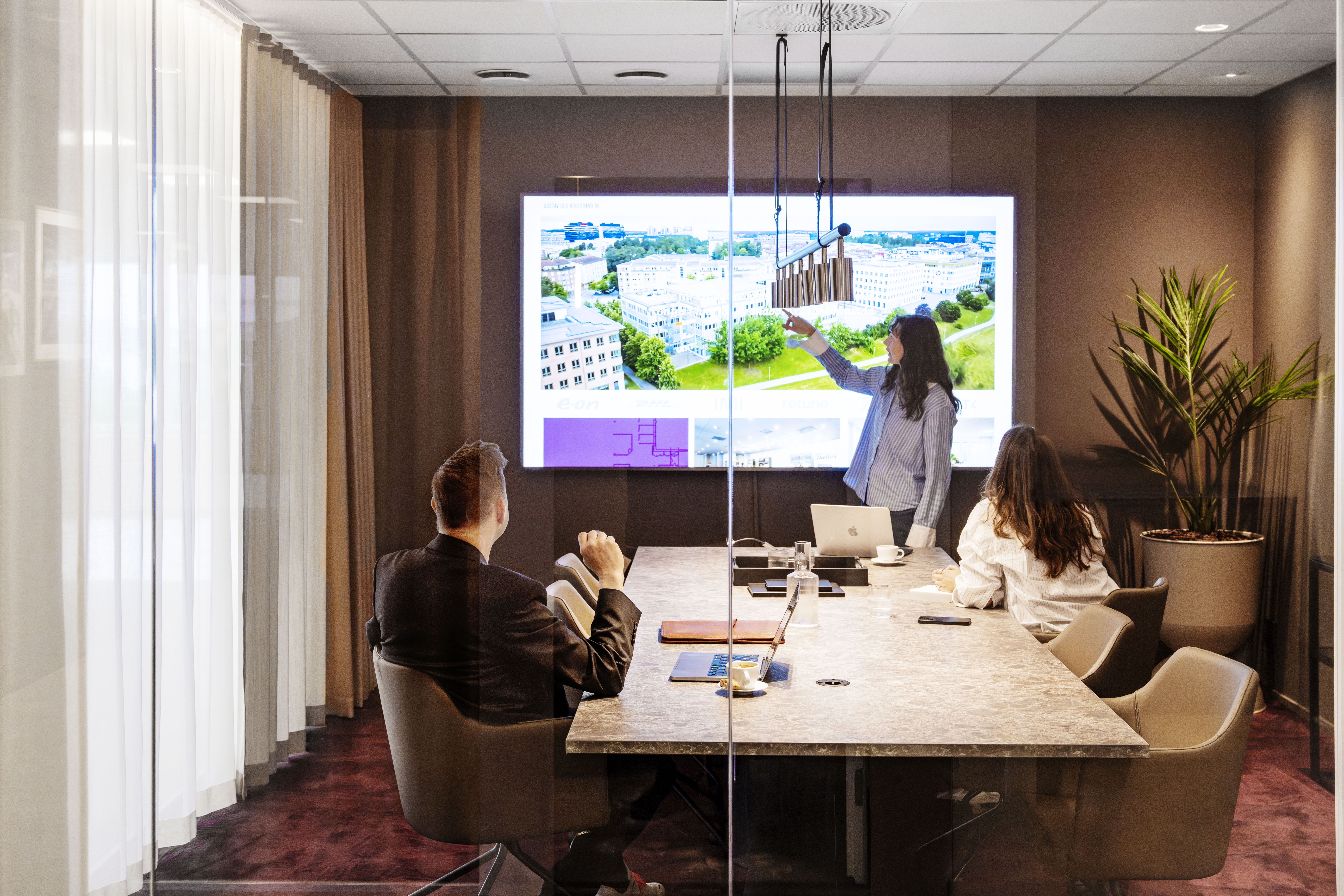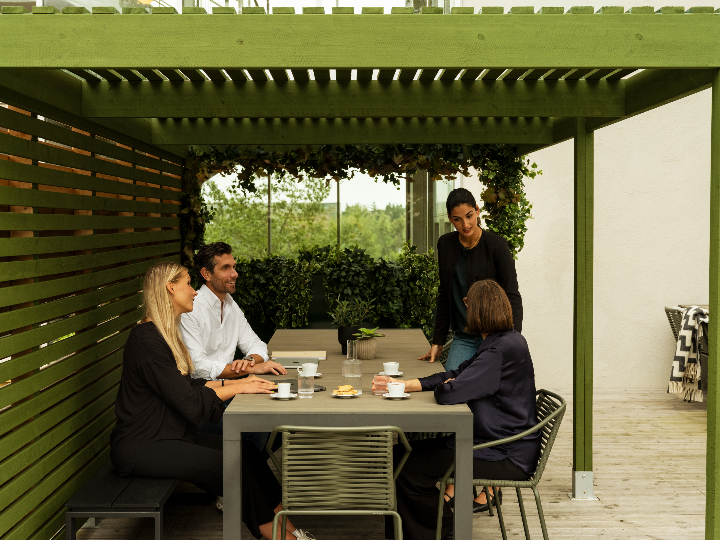 Närmast av allt ligger husets egen trivselcentral, ett trevligt café med lunchalternativ i gatuplan där det alltid doftar nybakat. Precis utanför dörren ligger dessutom Frösundas egen piazza – ett mysigt torg med parkkänsla. Perfekt för en skön paus i solen under arbetsdagen eller kreativa möten med himmelshögt i tak. Eller varför inte en trevlig AW med kollegorna för att avrunda arbetsveckan på bästa sätt?