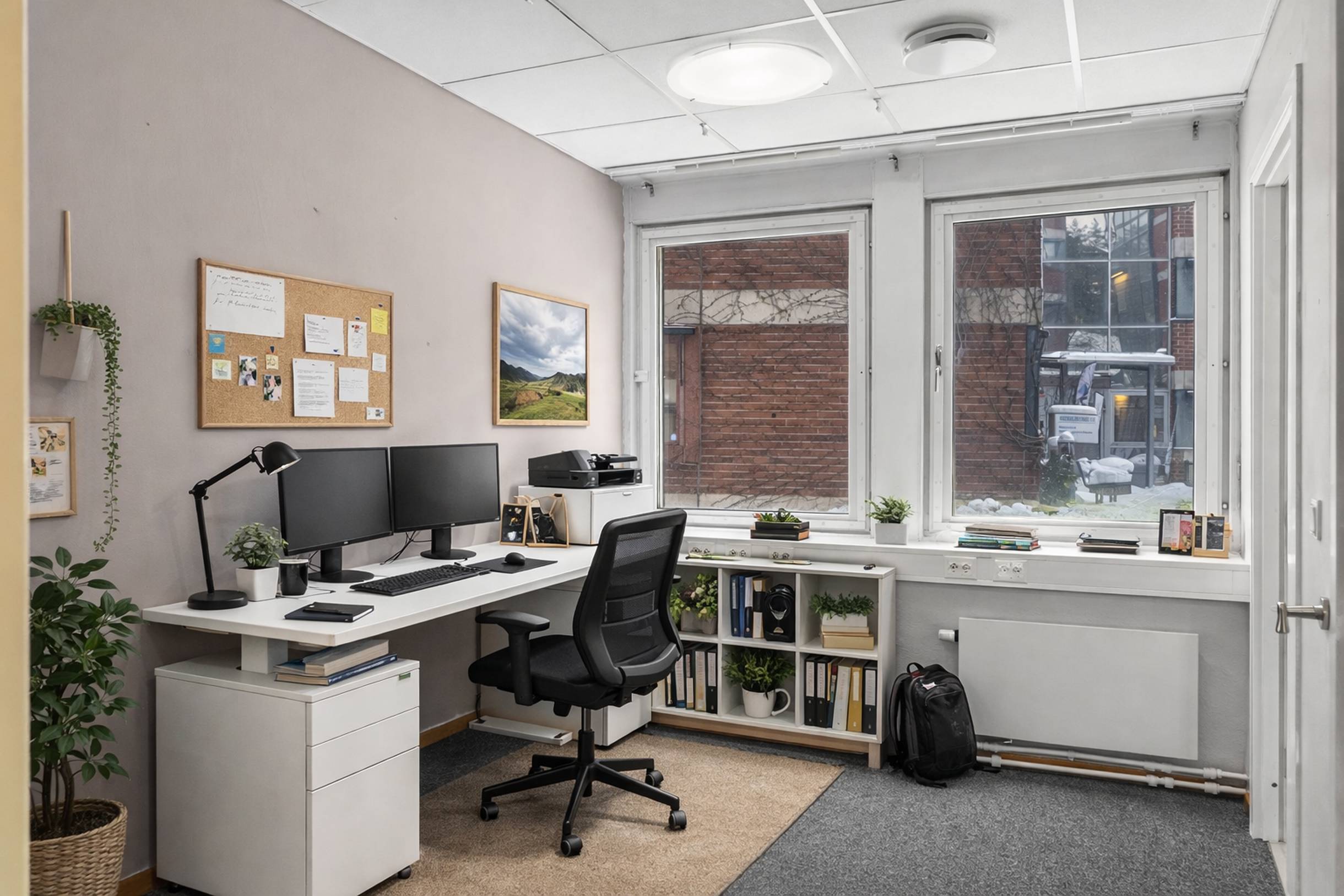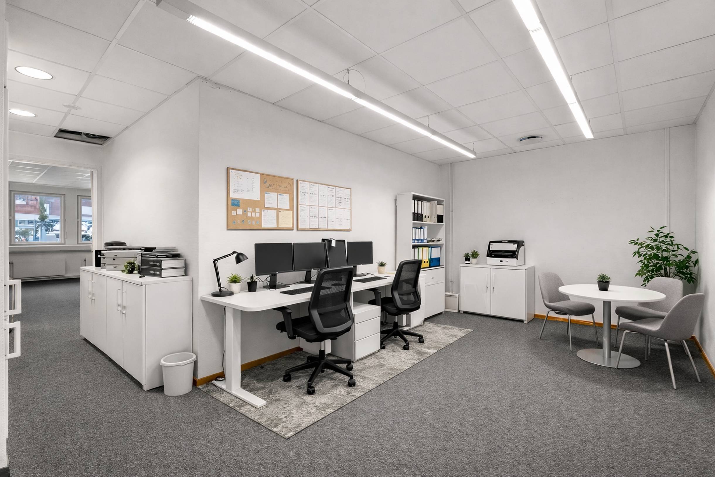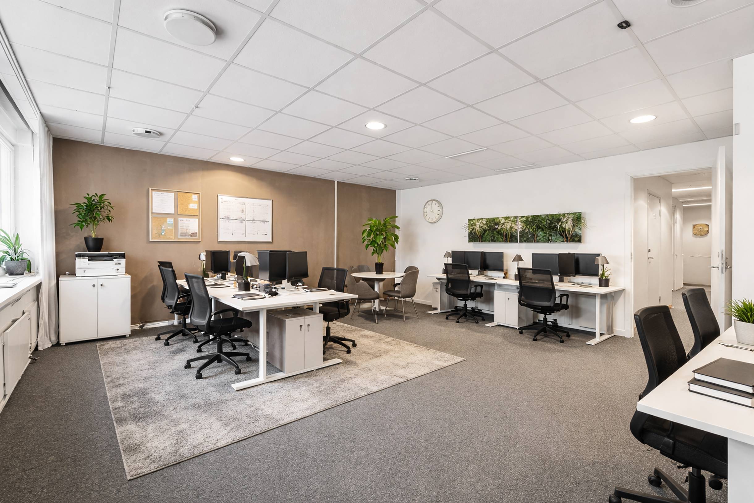Lokalen erbjuder en genomtänkt planlösning med en kombination av öppna arbetsytor och flertalet glasade kontorsrum. Här skapas en modern och trivsam arbetsmiljö med generöst ljusinsläpp från stora fönsterpartier.