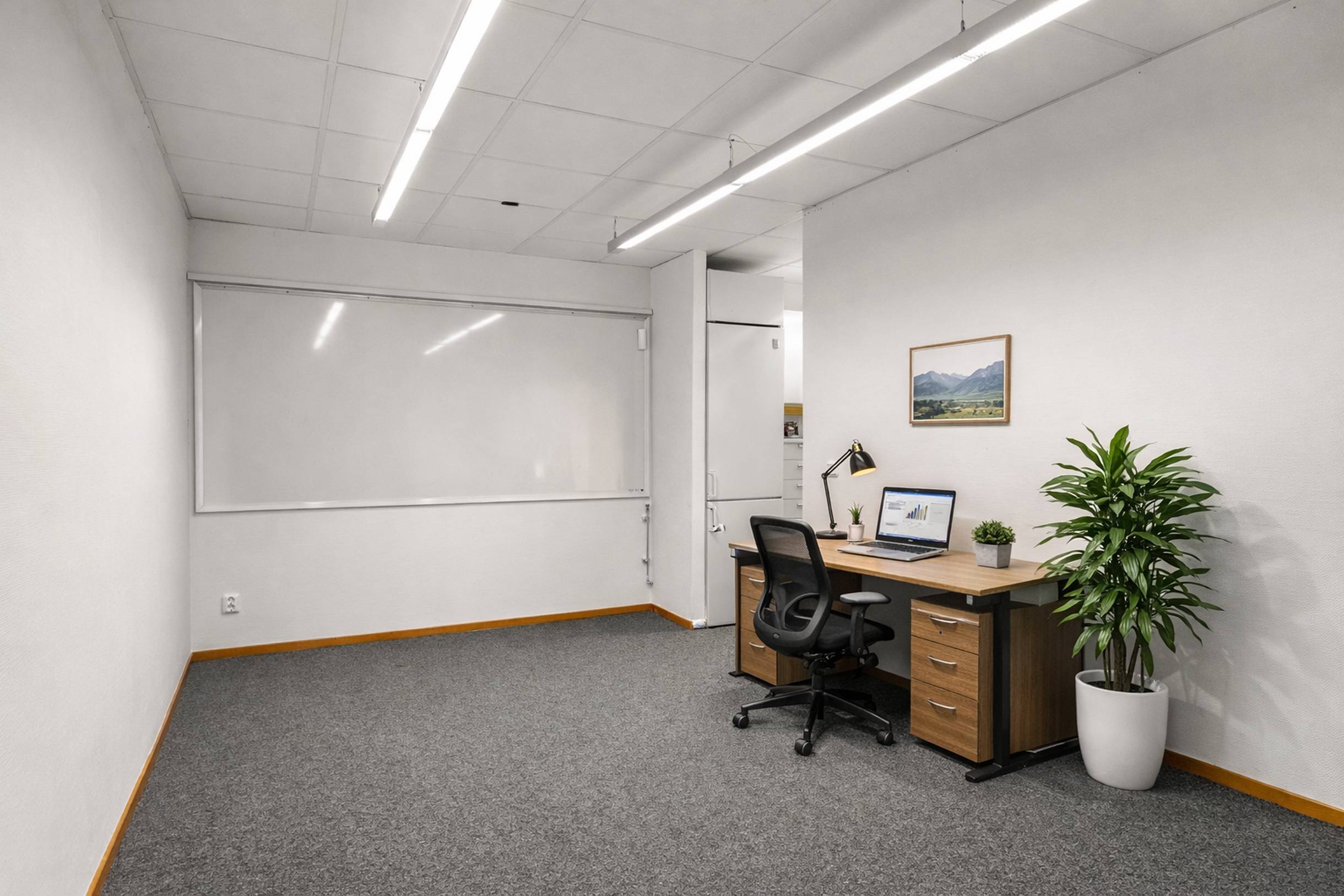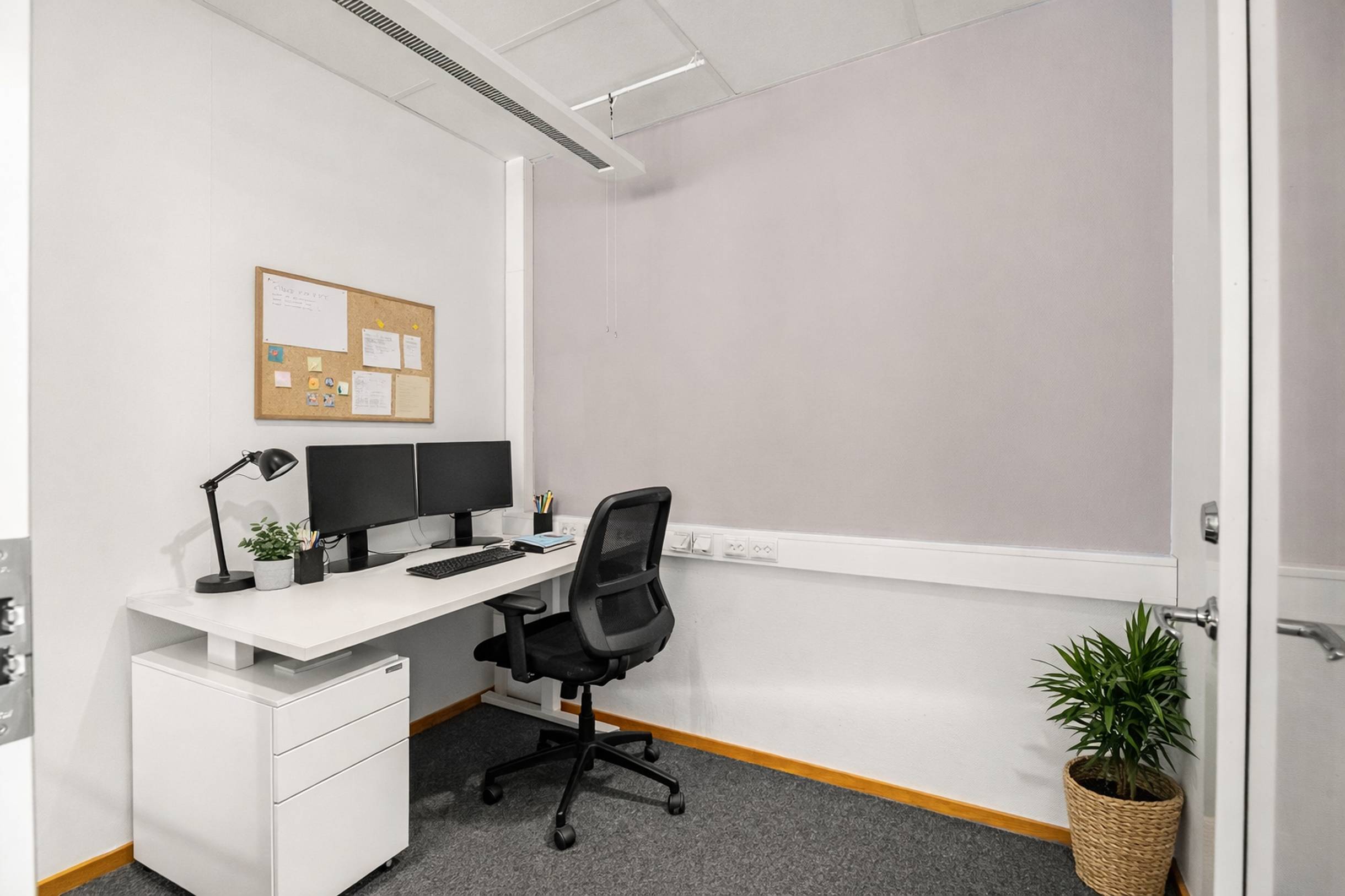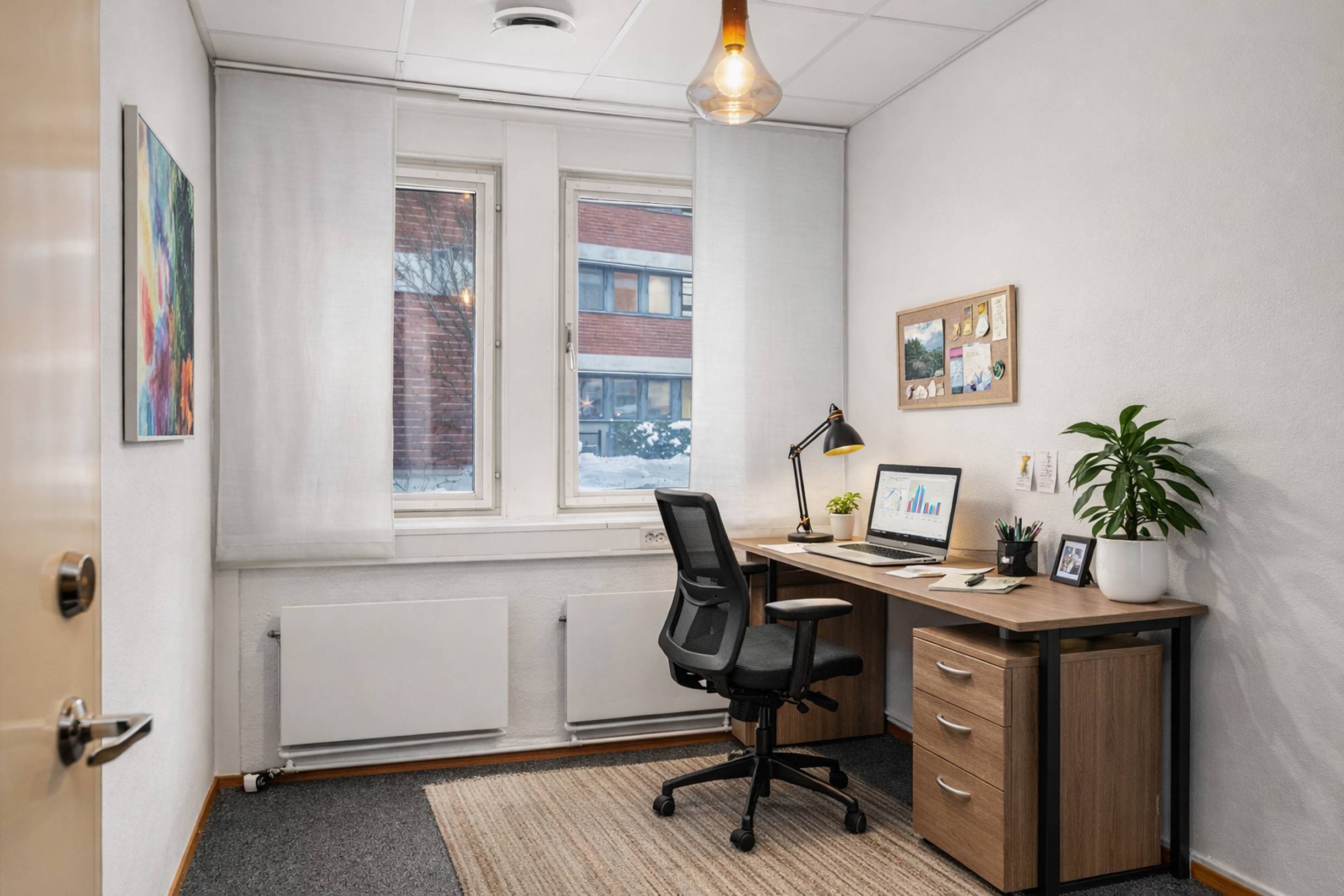 Lokalen erbjuder en genomtänkt planlösning med en kombination av öppna arbetsytor och flertalet glasade kontorsrum. Här skapas en modern och trivsam arbetsmiljö med generöst ljusinsläpp från stora fönsterpartier.