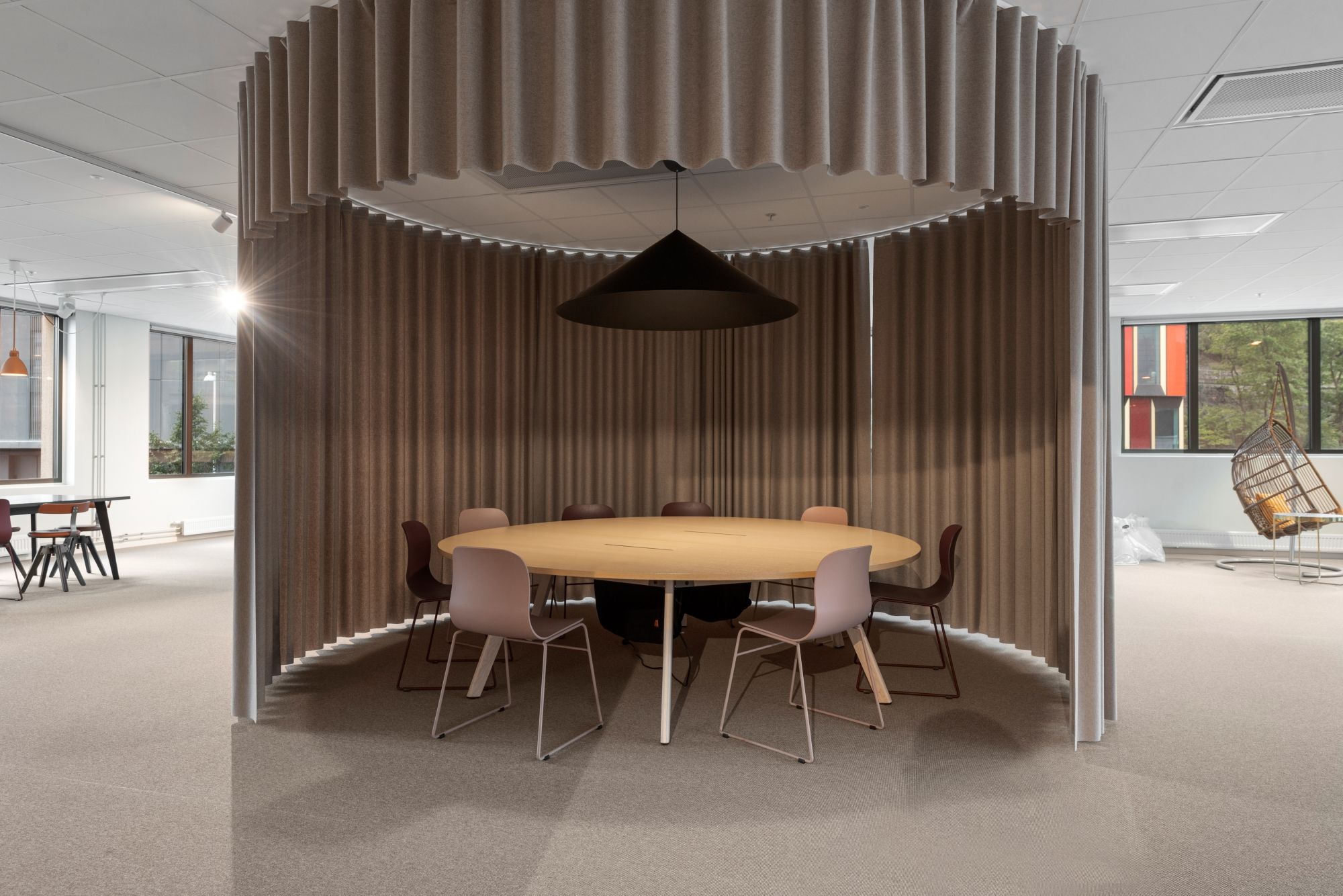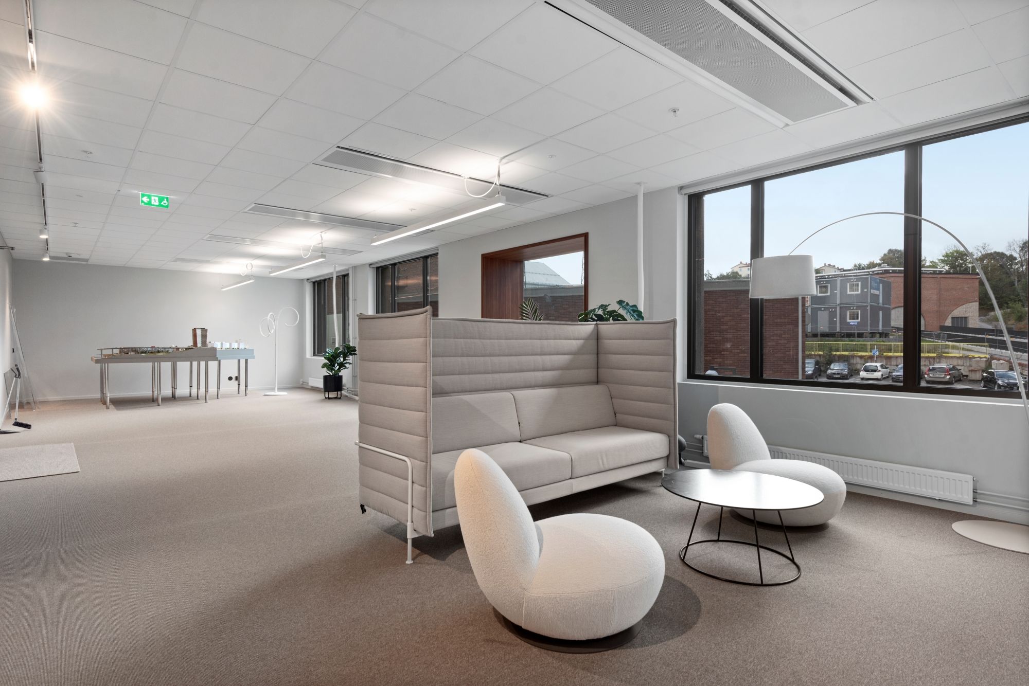 Huset som är byggt i en komplex miljö – mellan industri och händelsernas centrum – andas ett lugn som bidrar till kreativa tankar och idéer.