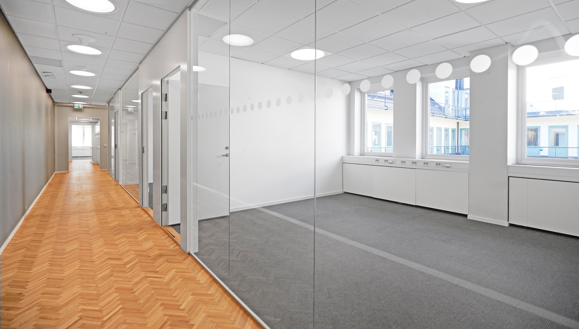Detta kontor är utformat för företag som värdesätter egna arbetsrum och avskildhet i kombination med gemensamma ytor. Lokalen är rumsindelad med ett flertal kontorsrum i olika storlekar samt flera mötesrum som gör det enkelt att kombinera fokuserat arbete med samarbeten. Perfekt för advokatbyråer, konsultbolag eller andra verksamheter som har behov av många separata rum.