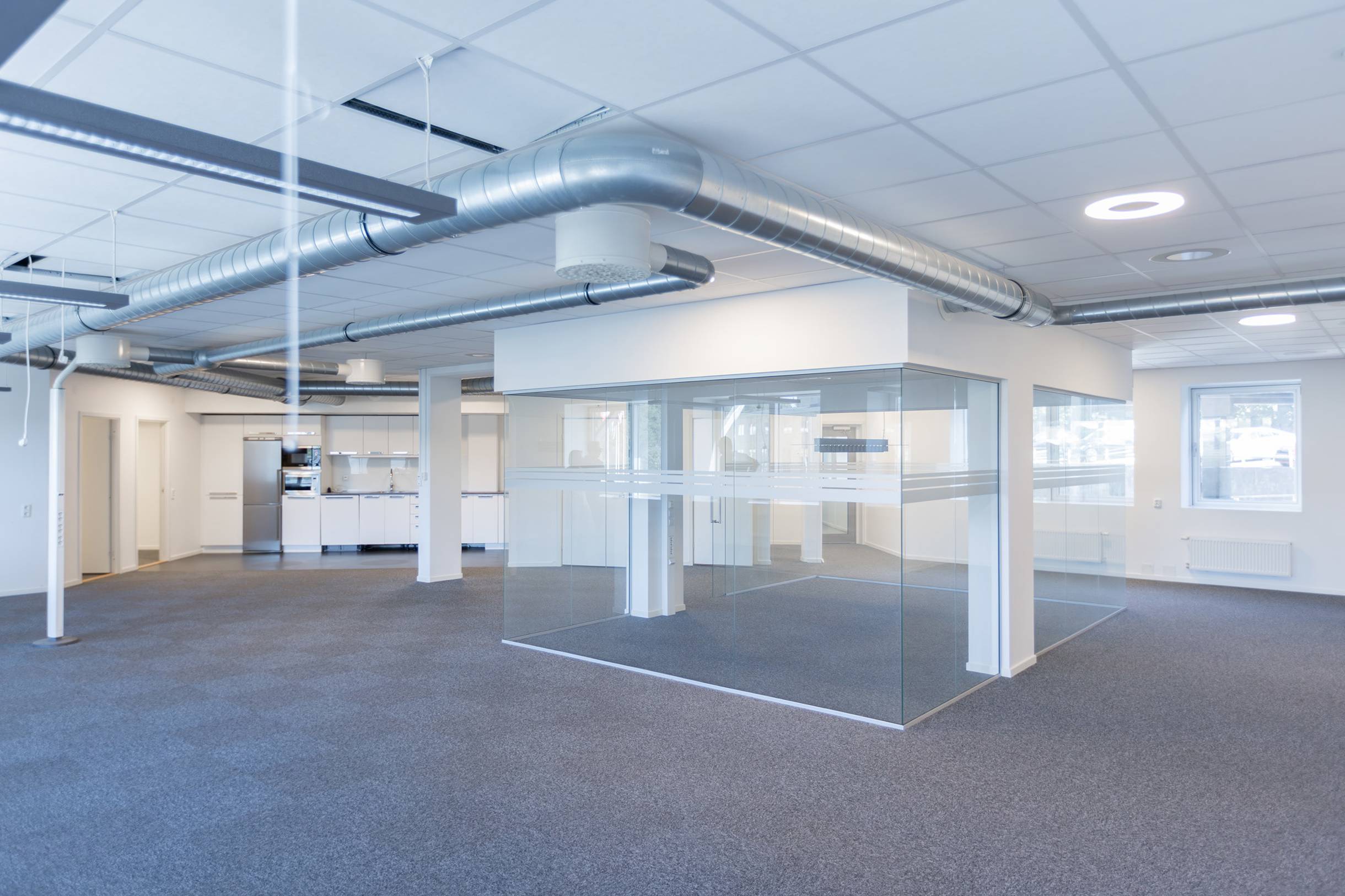 Här finns ett transparent mötesrum, ett öppet kontorslandskap med stora fönsterpartier som ger ett generöst ljusinsläpp och skapar en trivsam samt inspirerande arbetsmiljö.