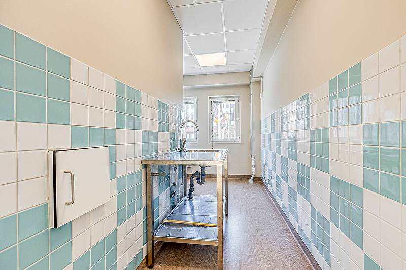 Ljus och välhållen lokal i gott skick, belägen på plan 2 med tillgång till hiss och handikappstillgänglighet. Lokalen lämpar sig för en rad olika verksamheter inom vård och behandling, och har tidigare använts som gynekologmottagning. Planlösningen är rumsindelad och består i dagsläget av fyra behandlings- eller undersökningsrum om cirka 15-18 kvm vardera, samtliga utrustade med handfat. Ett av rummen är dessutom utrustat med diskbänk och har en lucka mot HWC, vilket lämpar sig väl för provtagning. Det finns också förrådsutrymmen för förvaring av material och utrustning. I direkt anslutning till entrén finns en reception med tillhörande backoffice-yta. Lokalen är utrustad med besamöppnare. Det finns även möjlighet att inreda ett mötes- eller samtalsrum med plats för 4-6 personer. För personal och besökare finns ett pentry med plats för mindre matplats samt två WC, varav en är utrustad med dusch.