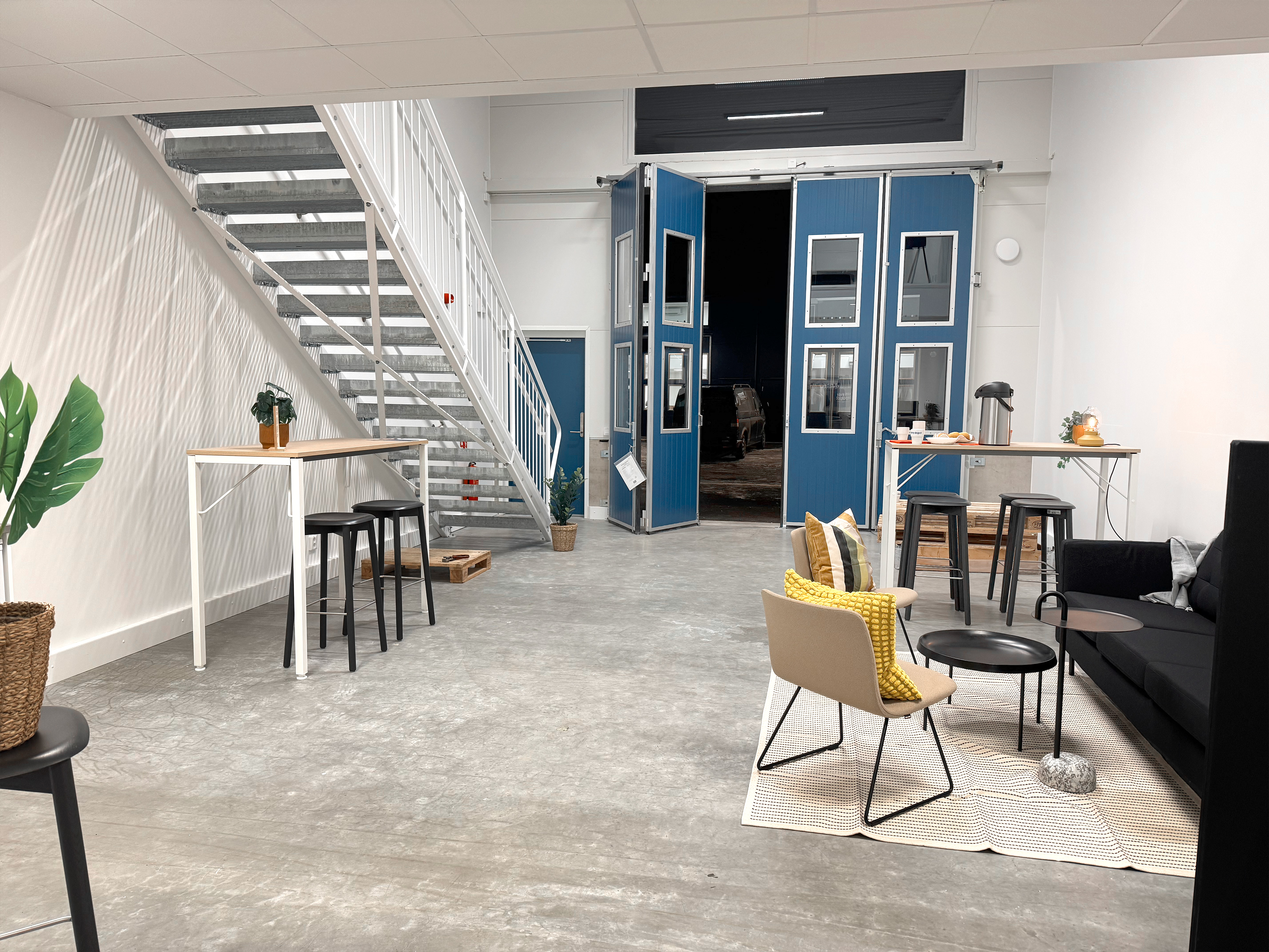 Lokalen kännetecknas av stora och höga portar och generösa öppna ytor på nedre plan medan du finner ett inglasat entrésolplan en trappa upp (endast medium och large har entrésolplan). Självklart får du tillgång till de gemensamma ytorna i vår Easy Lounge, elbilsladdare och vår app.