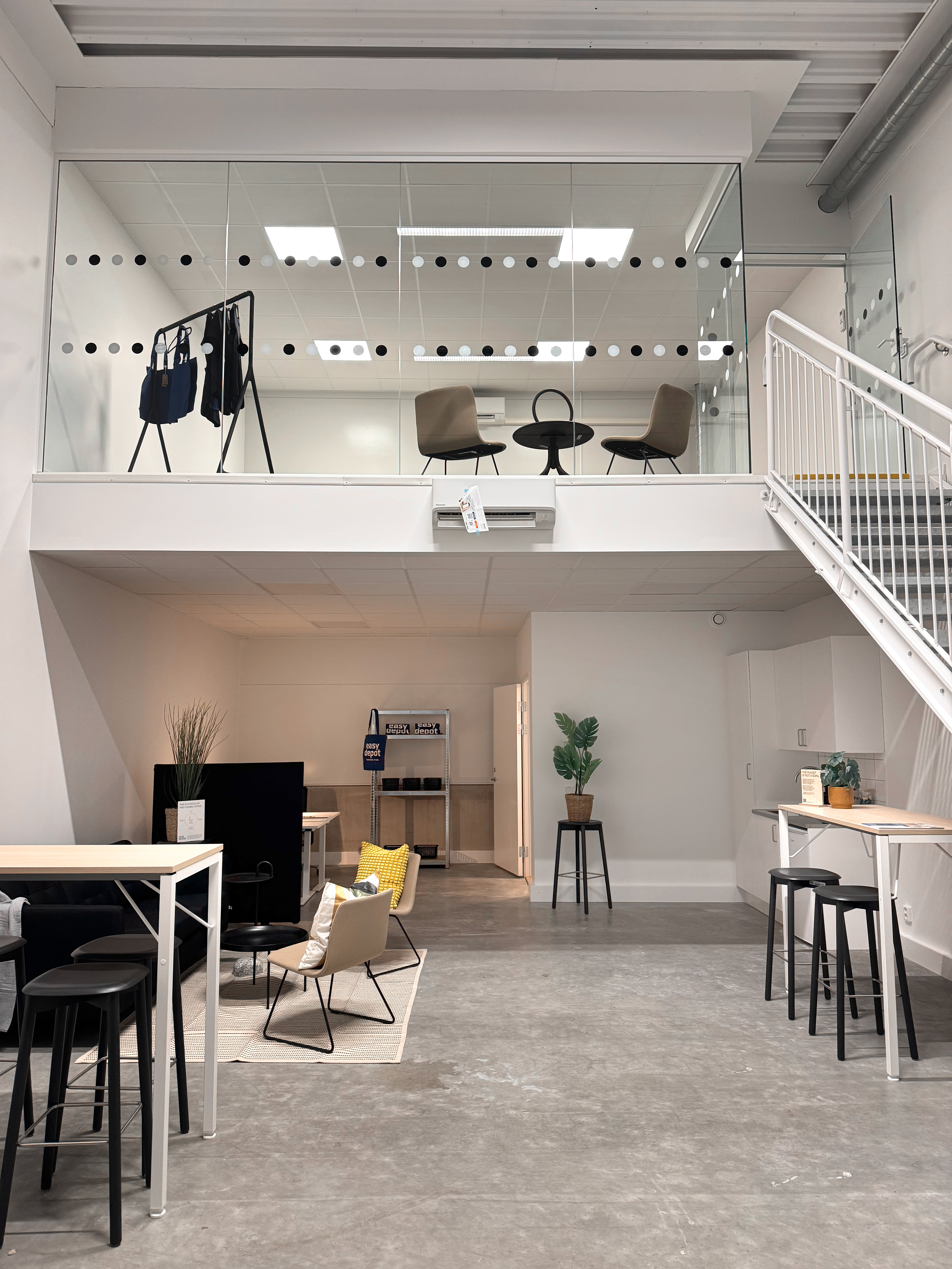 Med Easy Depots digitala koncept kan du öppna din port, boka ditt mötesrum, chatta med kontorsgrannar och hålla koll på din elförbrukning direkt i mobilen. Samtidigt har vi en fysisk mötesplats, Easy Lounge, där du kan lära känna dina grannar, ha en gemensam lunch och nyttja konferensrummet.