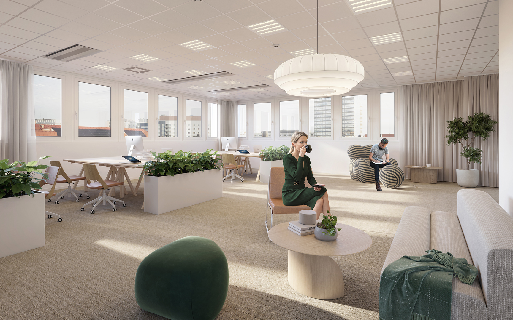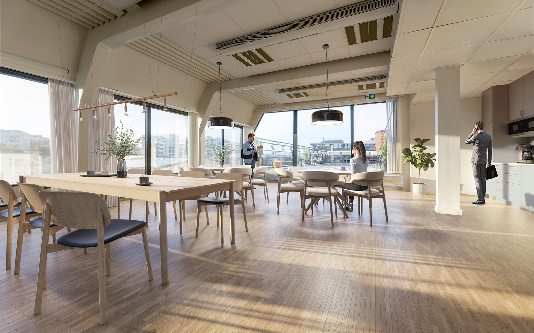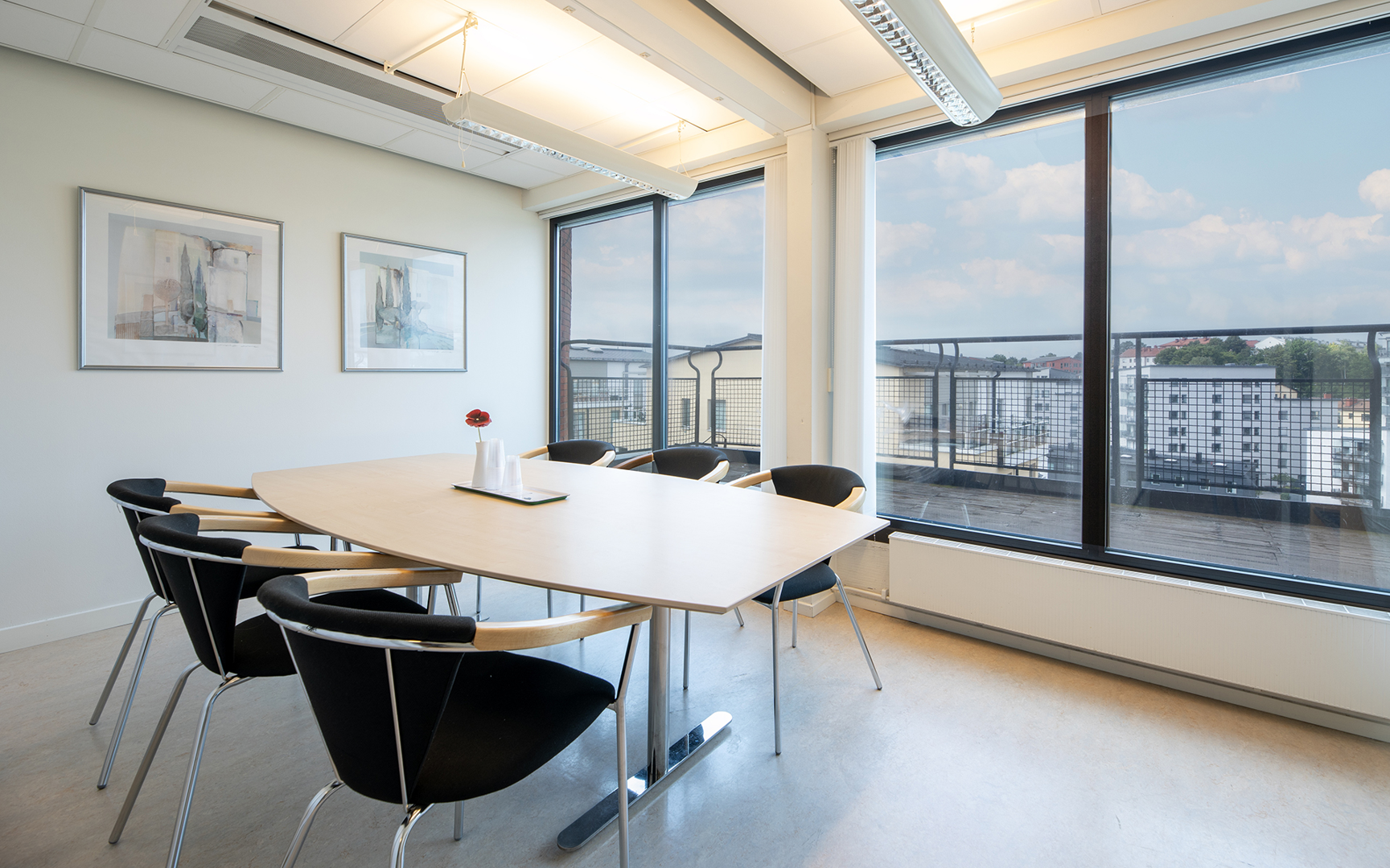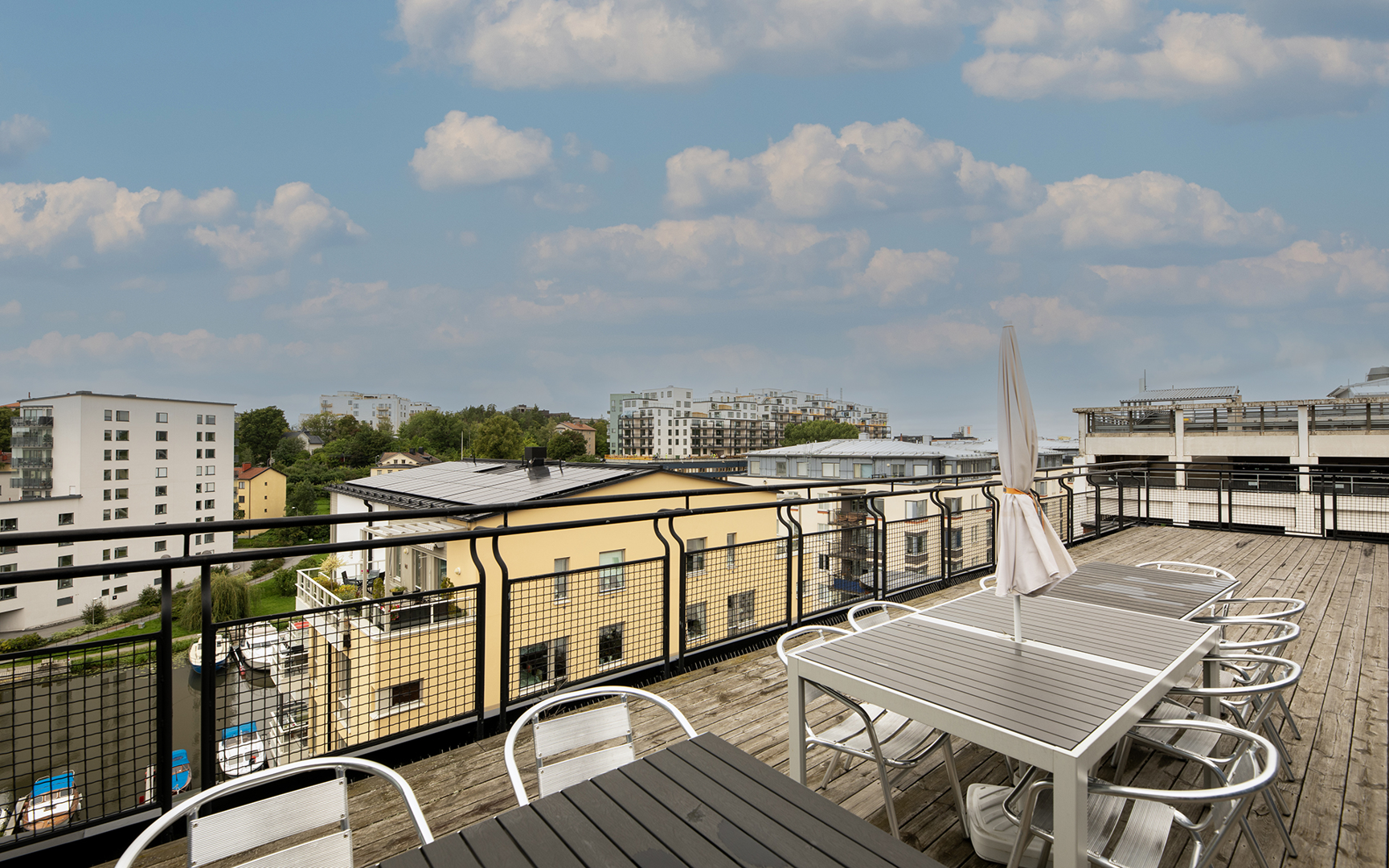 När det är dags för en paus kan du och dina kollegor njuta av en lunch på någon av de två terrasserna. Med utsikt över Bällstaån blir lunchpausen en stunds avkoppling.