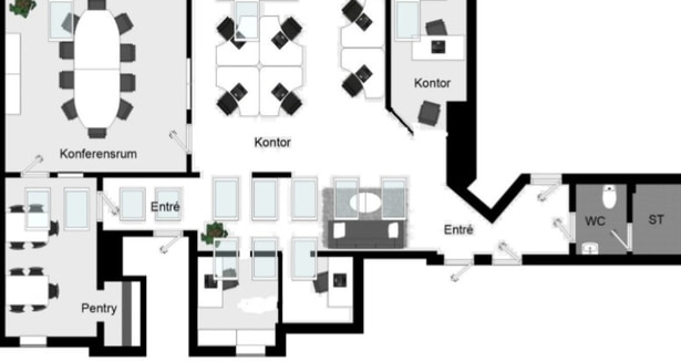 Planlösningen består av flera kontorsrum, konferensrum samt mindre pentry och wc. Detta gör lokalen väl anpassad för mindre företag som söker en personlig och funktionell arbetsplats.