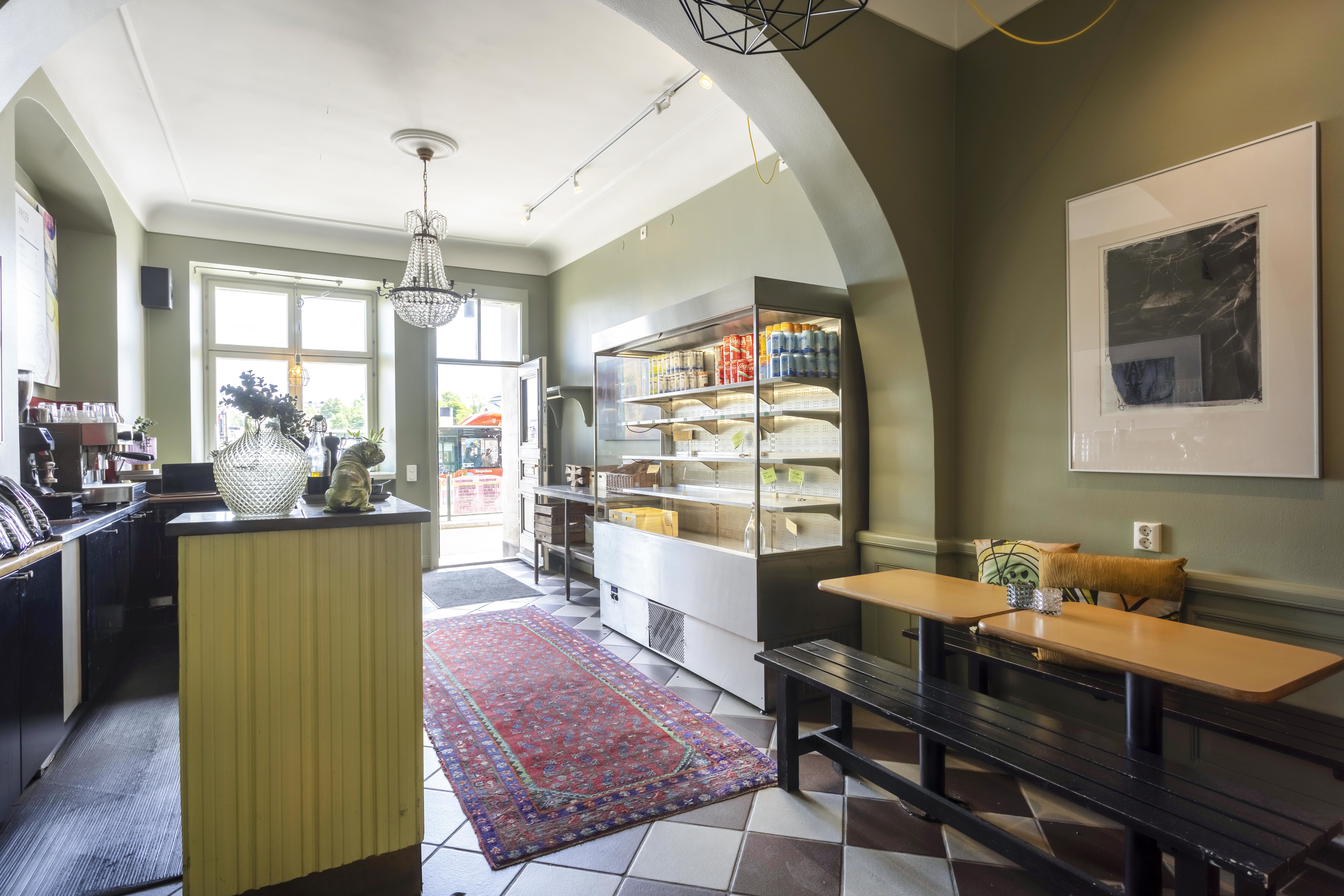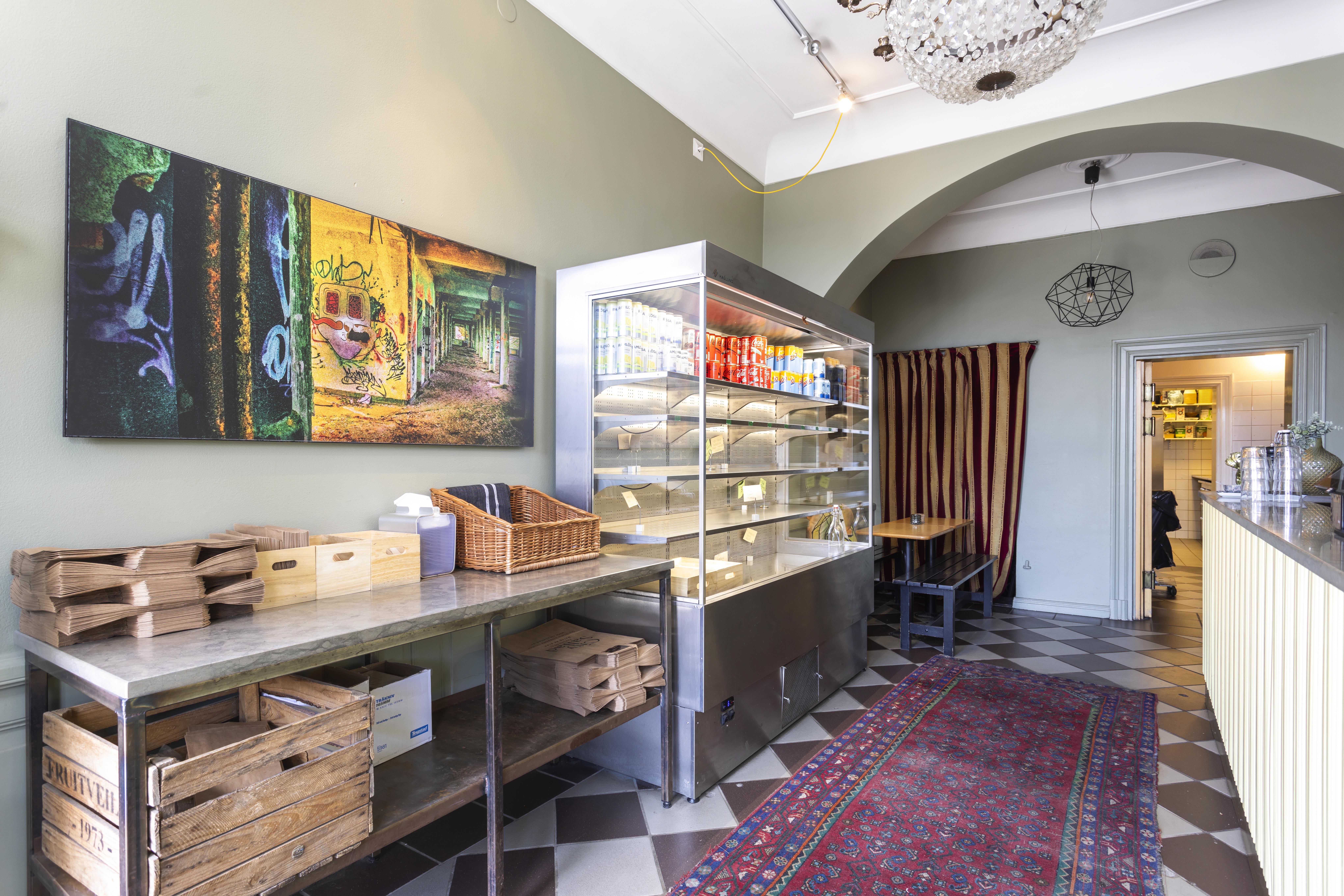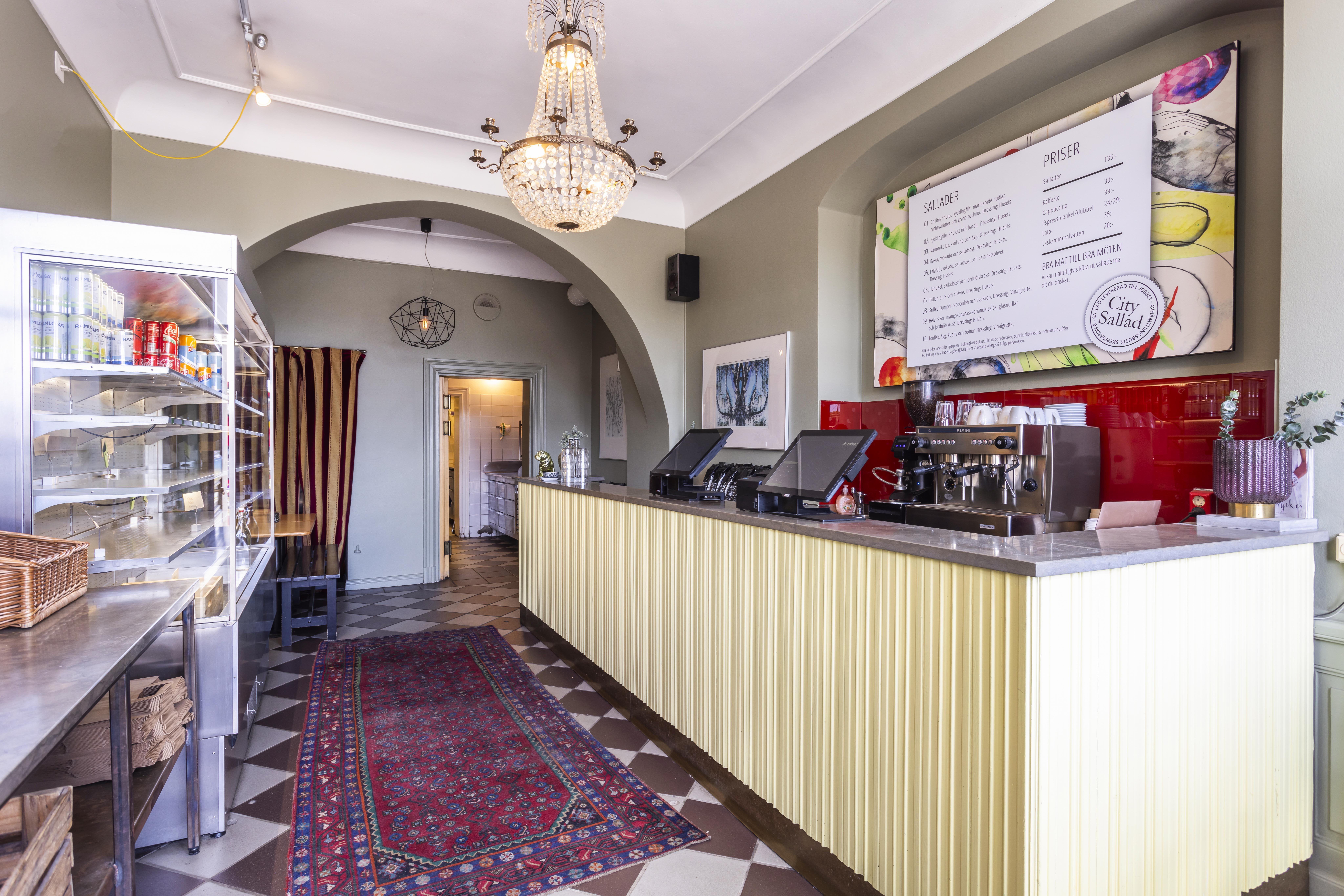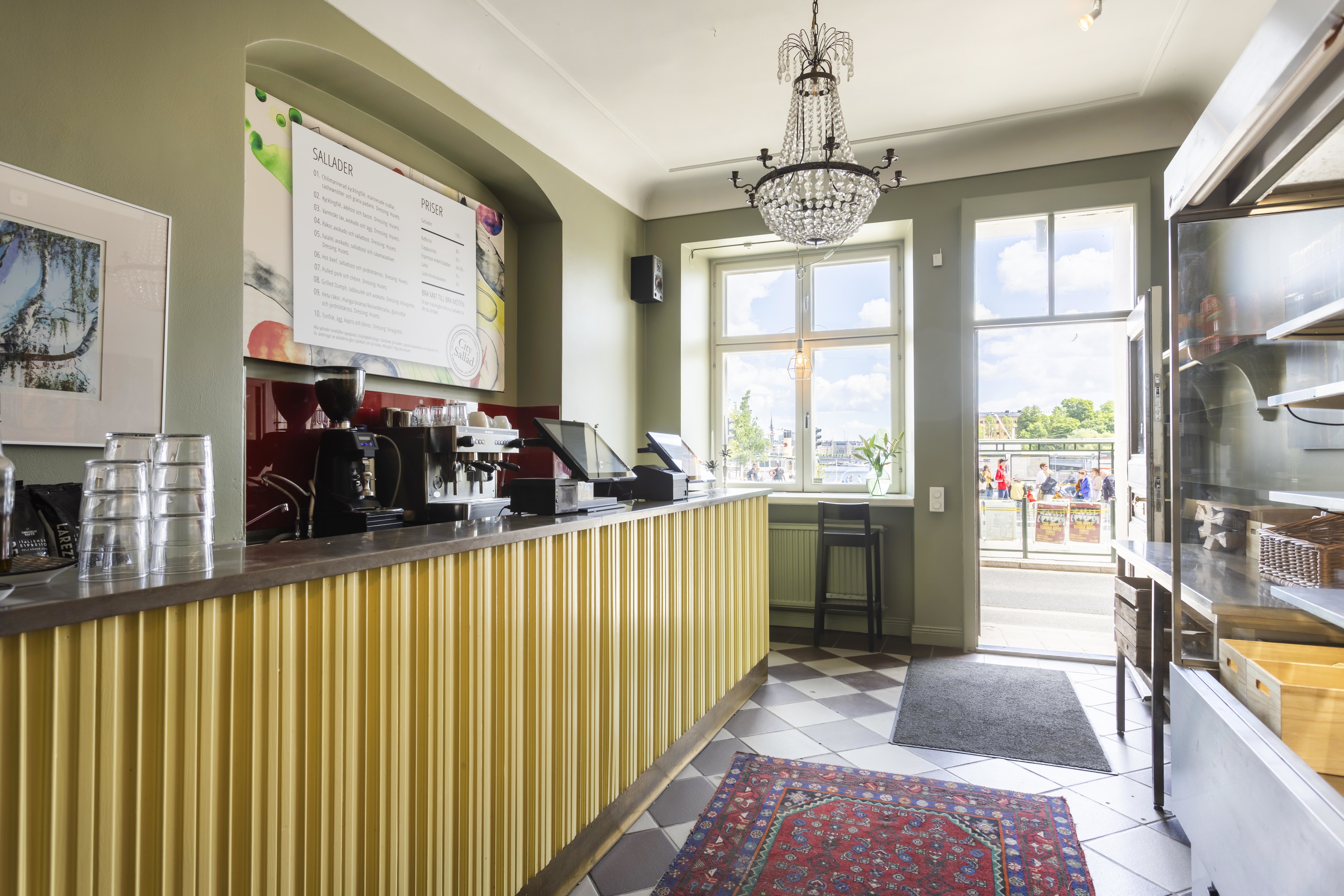 Trevlig och inbjudande lokal med härlig takhöjd som skapar en fin känsla av rymd. I dagsläget bedrivs ett salladscafé med tidigare omsättning om cirka 3,5 MSEK per år, där verksamheten varit inriktad mot kontor och take-away med öppettider under kontorstid samt stängt röda dagar. Här finns betydande utvecklingsmöjligheter för den som vill skapa ett mer publikt koncept och ta tillvara på den stora turistströmmen i området. En riktig pärla med stor potential. Lokalen saknar fettavskiljare och stekventilation.