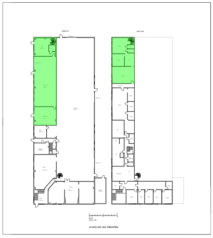 Bottenplanet om 244 kvm erbjuder effektiv yta för lager eller produktion med port i markplan, vilket möjliggör smidig in- och utlastning. Övre plan om 129 kvm används idag för lager/produktion men lämpar sig även utmärkt för kontor eller kombinerad verksamhet.