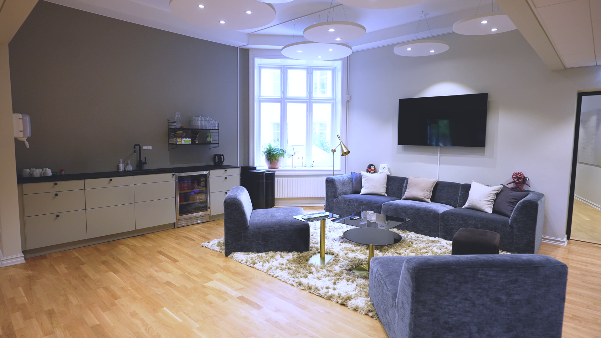 Ett smakfullt inrett pentry och fräscha toalettutrymmen bidrar till en trivsam, nästan ”hemma-hos”-känsla – perfekt för företag som värdesätter både estetik och arbetskomfort.