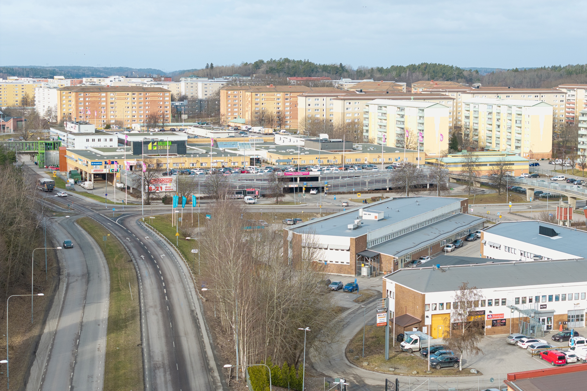 Hallunda centrum som har ett brett utbud av butiker, caféer och restauranger etc.