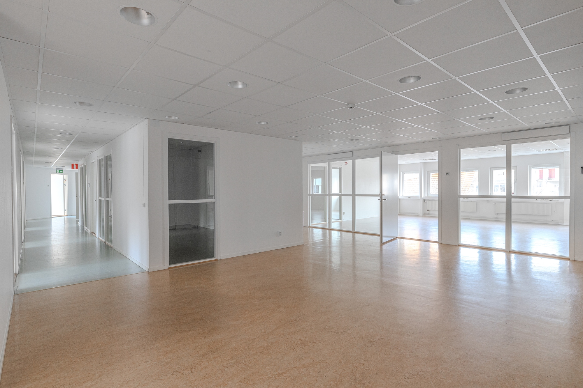 Lokalen består av en bra mix av kontors- och mötesrum i olika storlekar samt rymliga gemensamhetsutrymmen.
