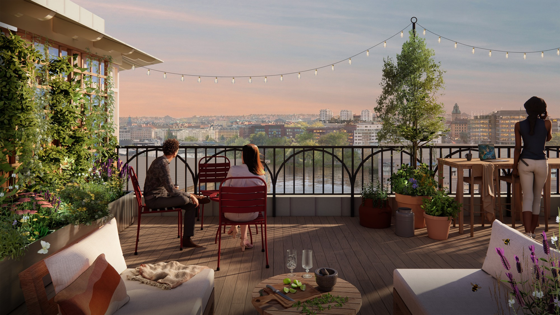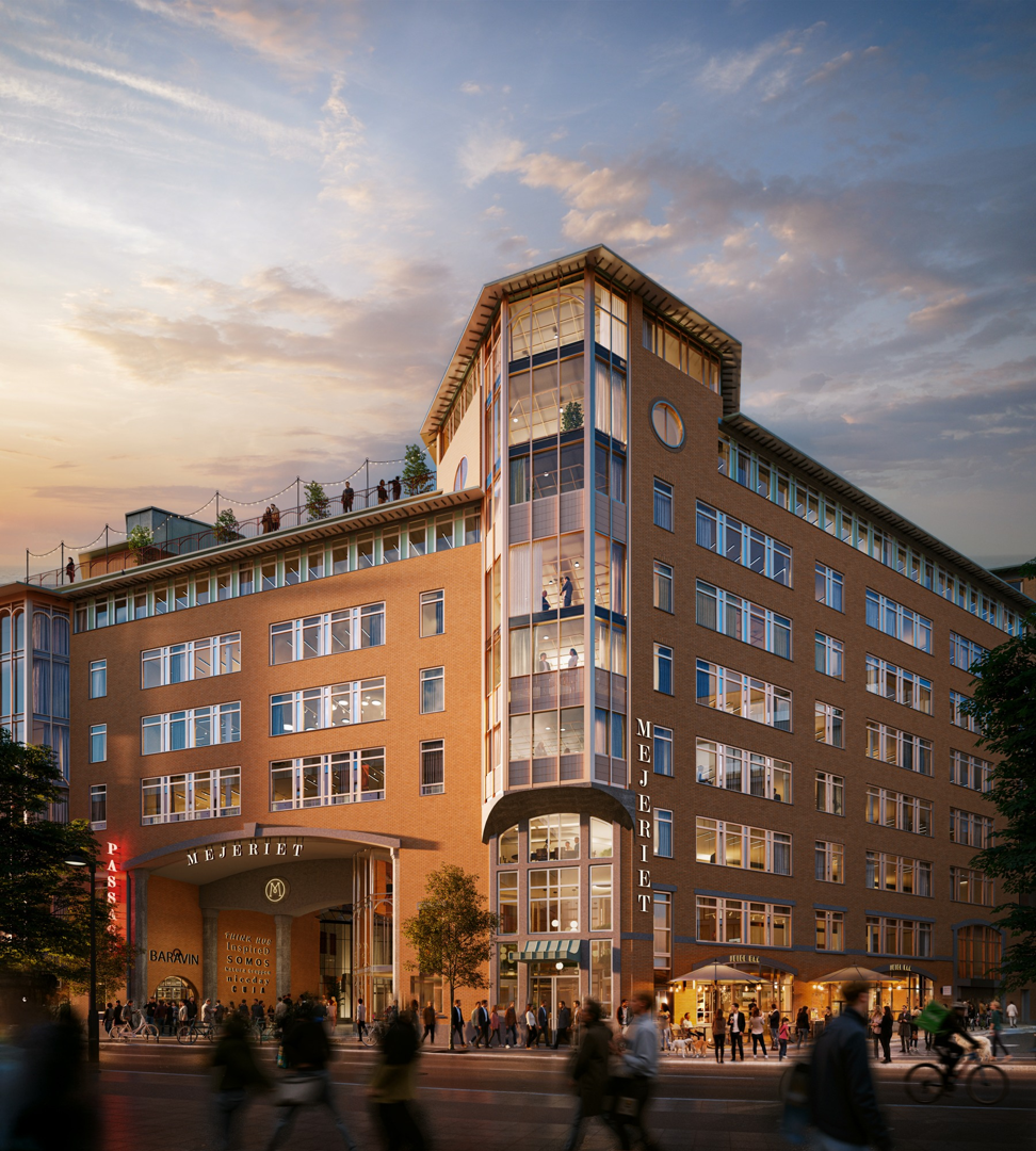 Här leder huvudentrén dig direkt från gatan in till husets gemensamma lobby, servicedesk och restaurang. Där serveras allt från nybryggt kaffe och frukost till lättare luncher och affärsluncher. En separat konferensavdelning och rymlig eventyta gör det enkelt att ordna egna möten eller evenemang. Som kronan på verket finns en gemensam takterrass – högt upp, med fri utsikt. En perfekt plats för lunch i solen, ett avkopplande avbrott eller möten under bar himmel.