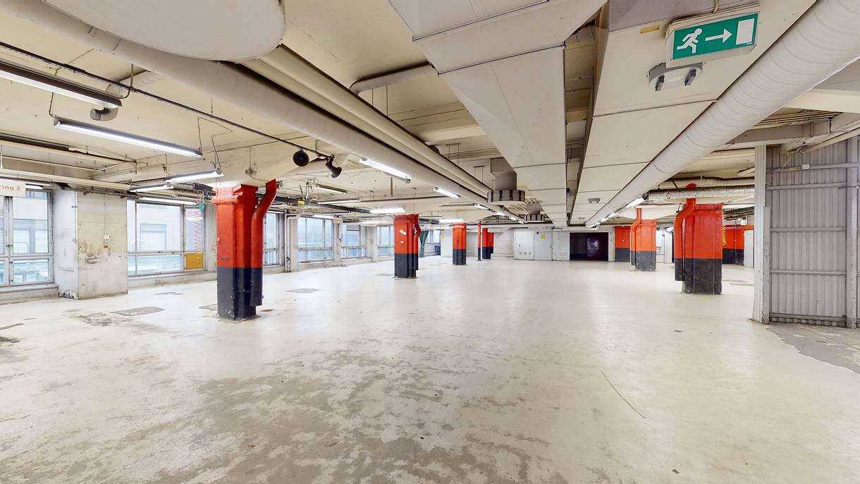 Den här lokalen har stora fönster med fint ljusinsläpp och det finns även möjlighet att göra om lokalen till kontorslokal eller produktionsyta. Lokalen är utrustad med oljeavskiljare och WC. Ytorna kan delas upp enligt:
