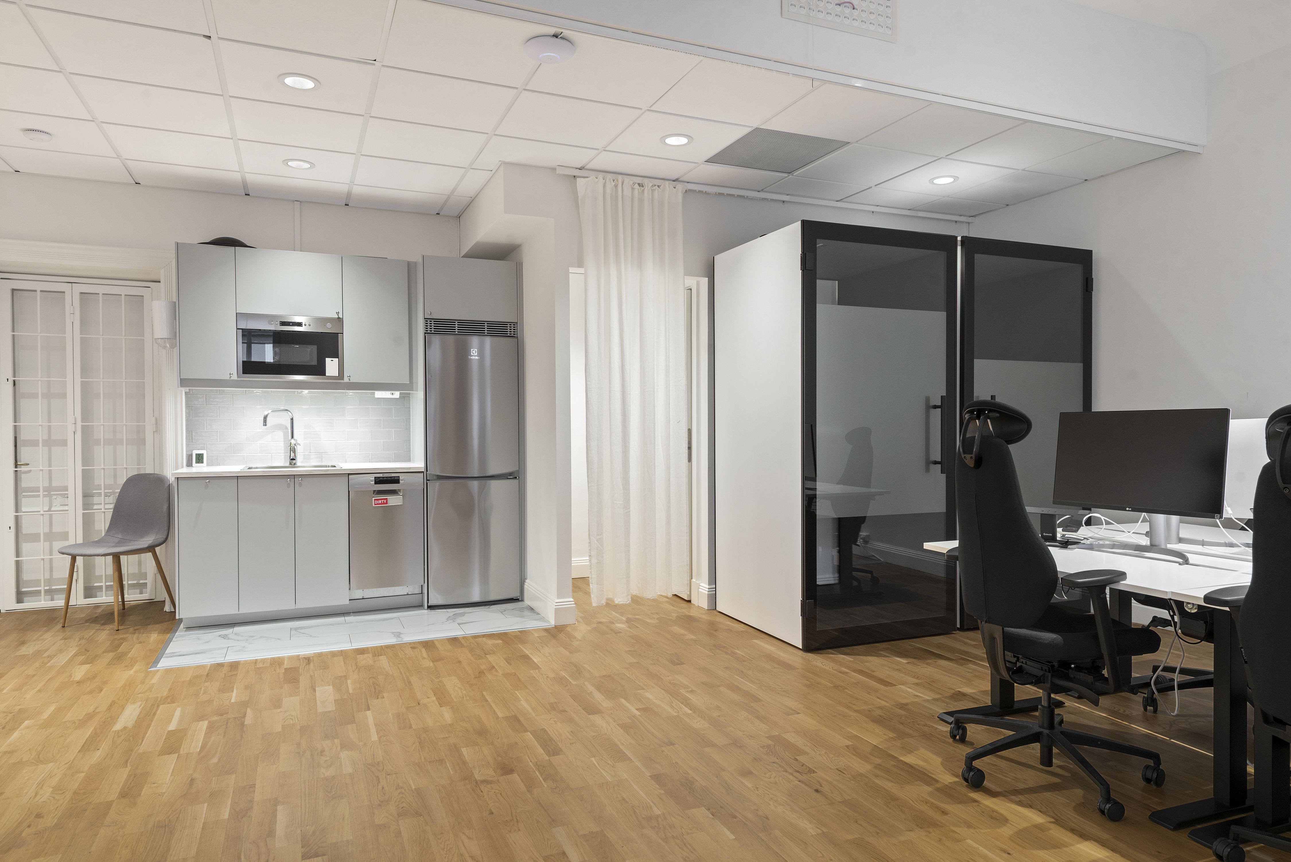 - 2 bokningsbara konferensrum samt 3 samtalspoddar.