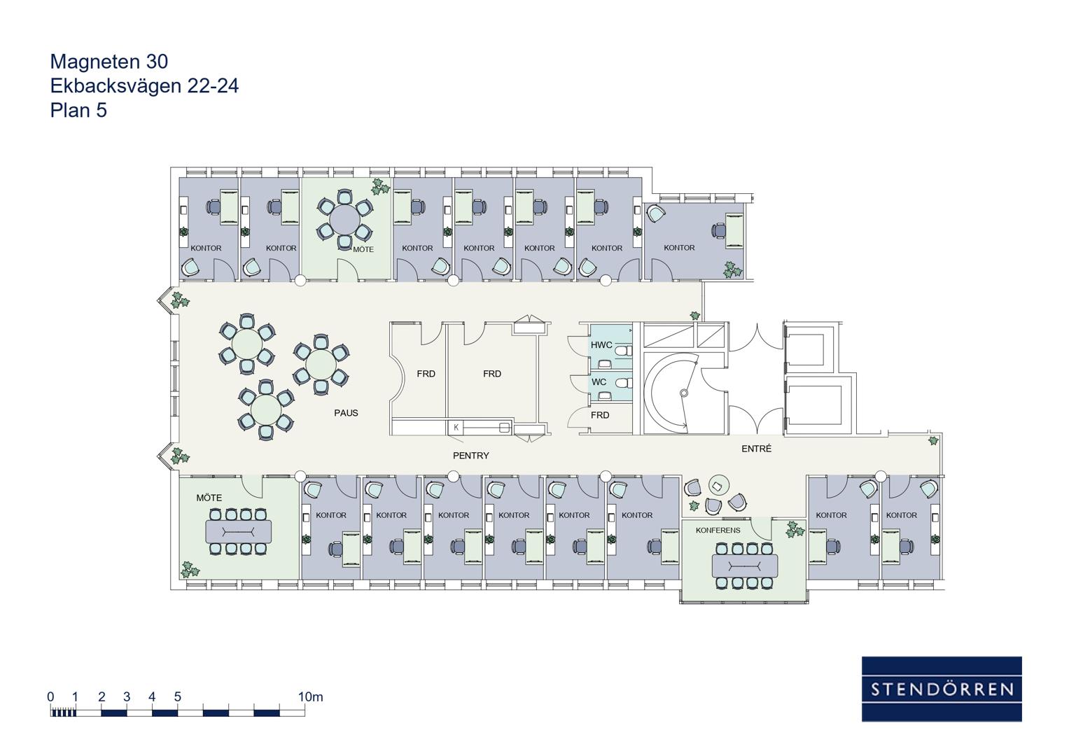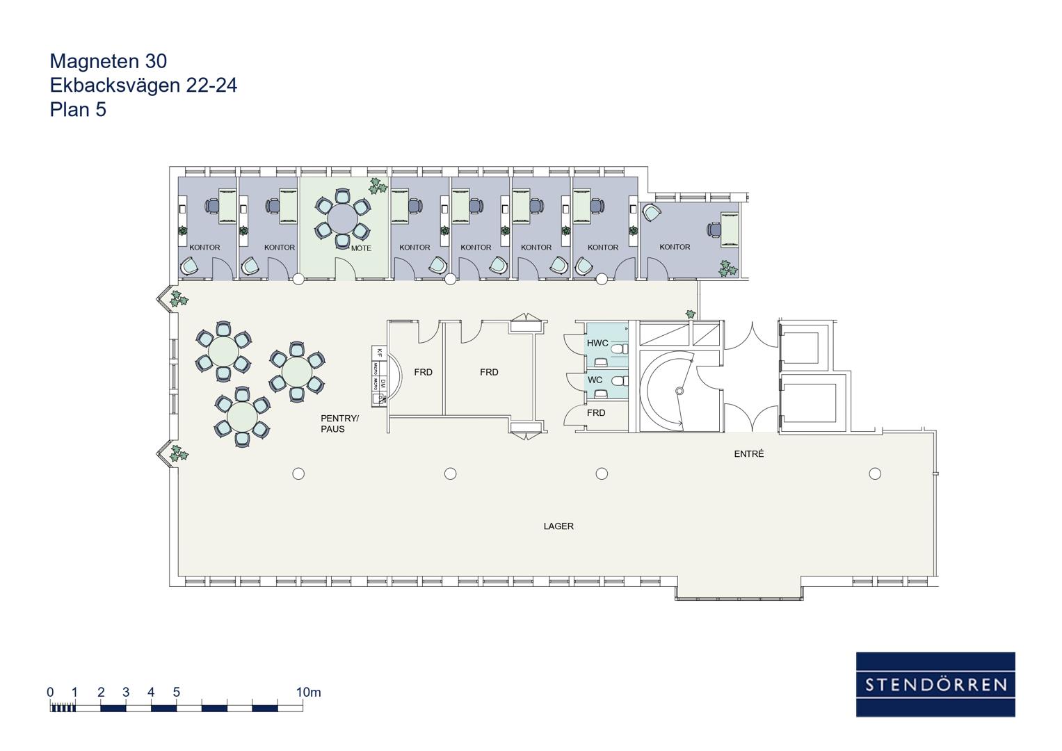 Kontoret erbjuder en bra blandning av mindre och större kontorsrum samt öppna lagerytor om så önskas. Smidig inlastning kan ske via fastighetens lastbrygga.
