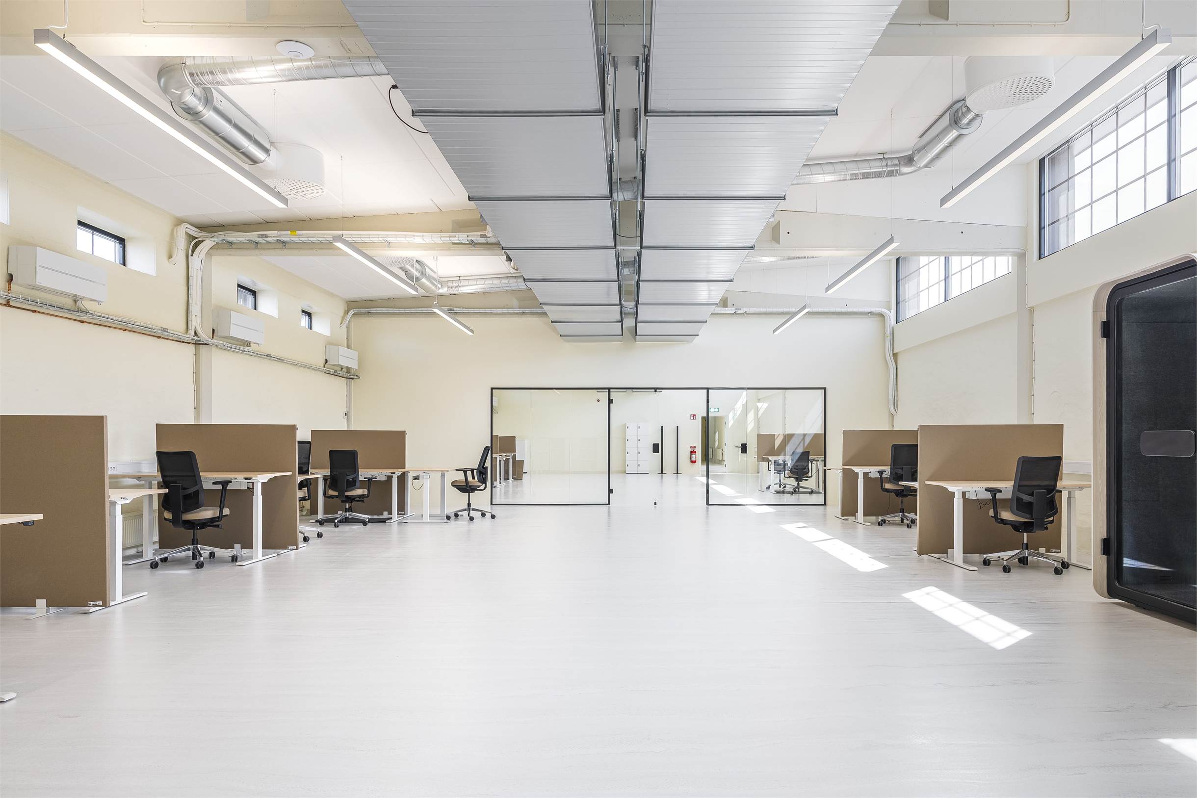 Lokalen är flexibelt planerad och passar både för traditionell kontorsverksamhet och företag som vill skapa en kreativ mötesplats med showroomkänsla.