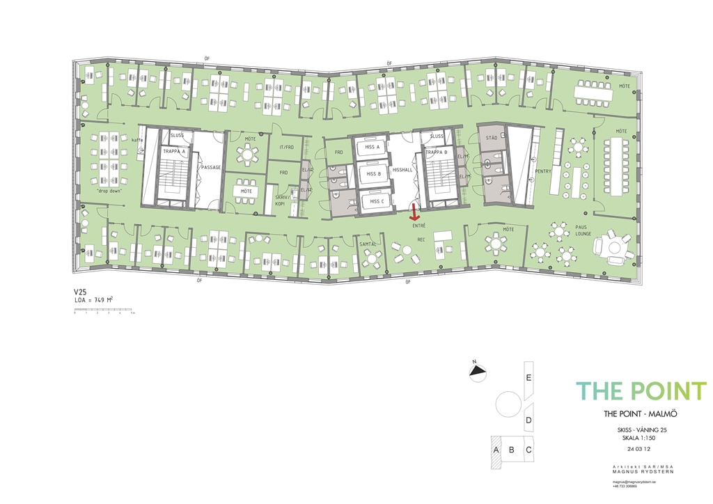 I The Point, 110 meter, skapas kontor med en otrolig utsikt över Skånes landskap. Den stora fönstersättningen skapar ett rikligt ljusflöde.