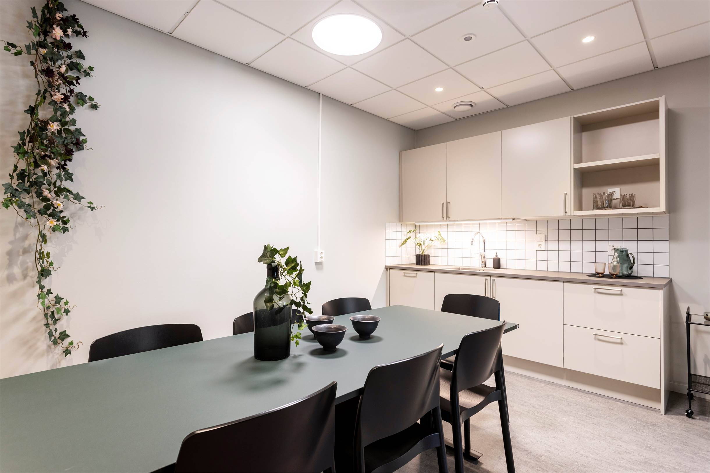 Lokalerna är utrustade med egna pentryn och i de gemensamma delarna finns både umgängesytor, WC och dusch.