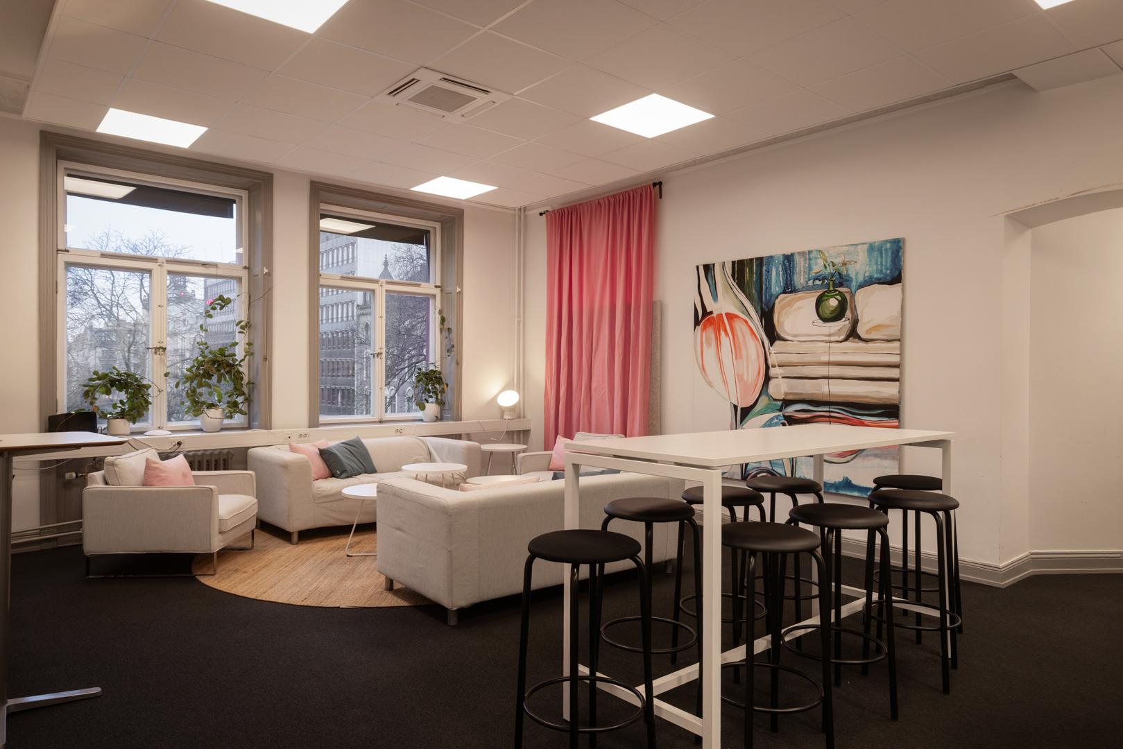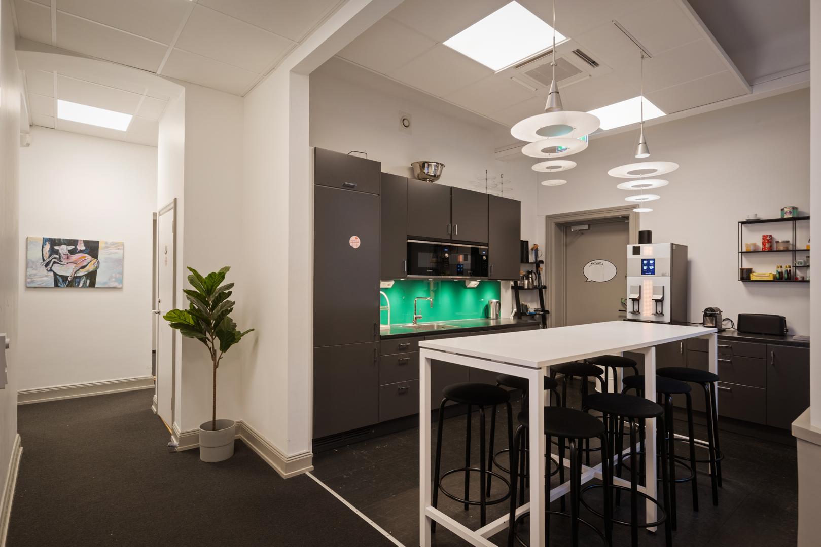 Bra planlösning som ger möjlighet till både öppna kontorsytor samt rum för arbetsplatser, möten och spontana samtal.