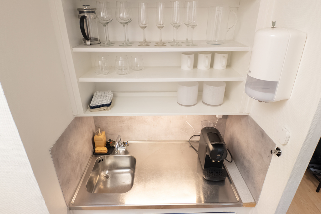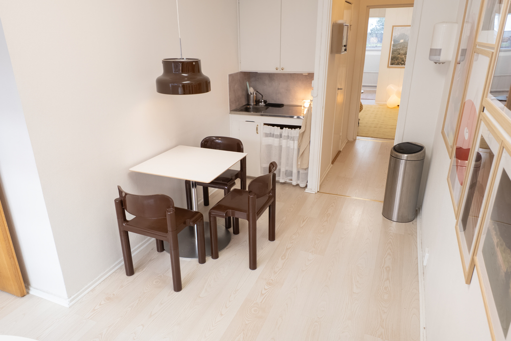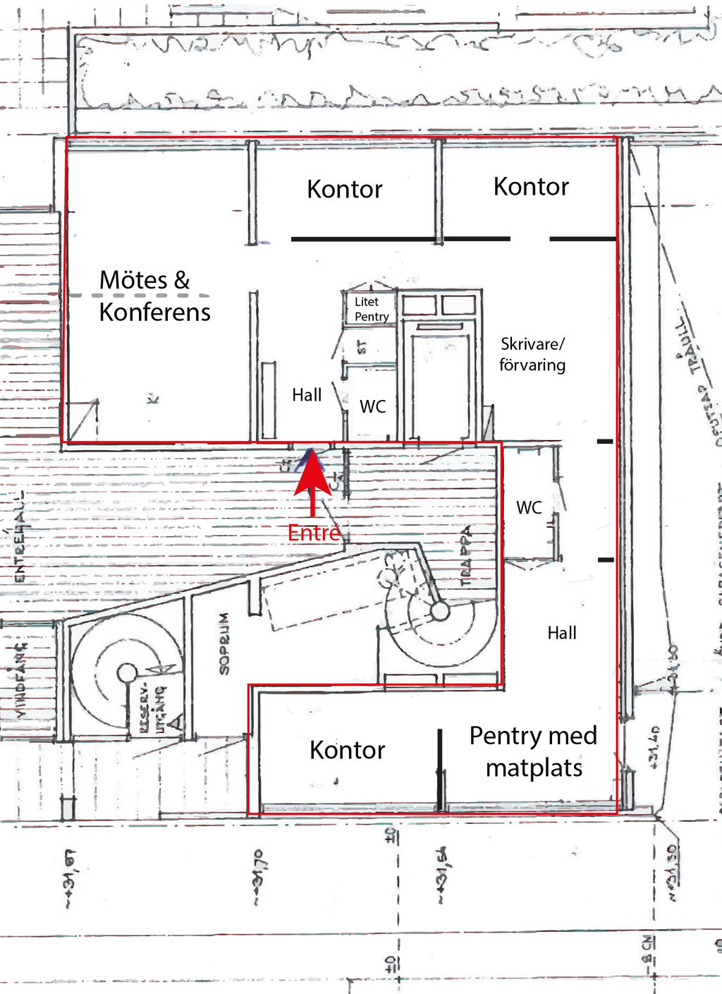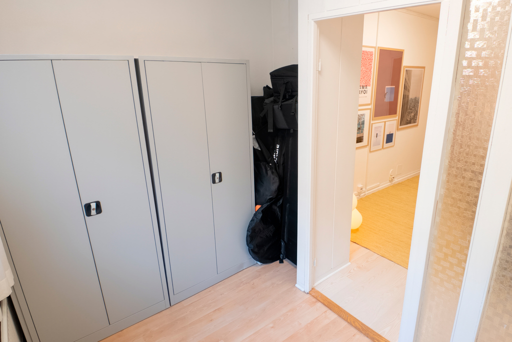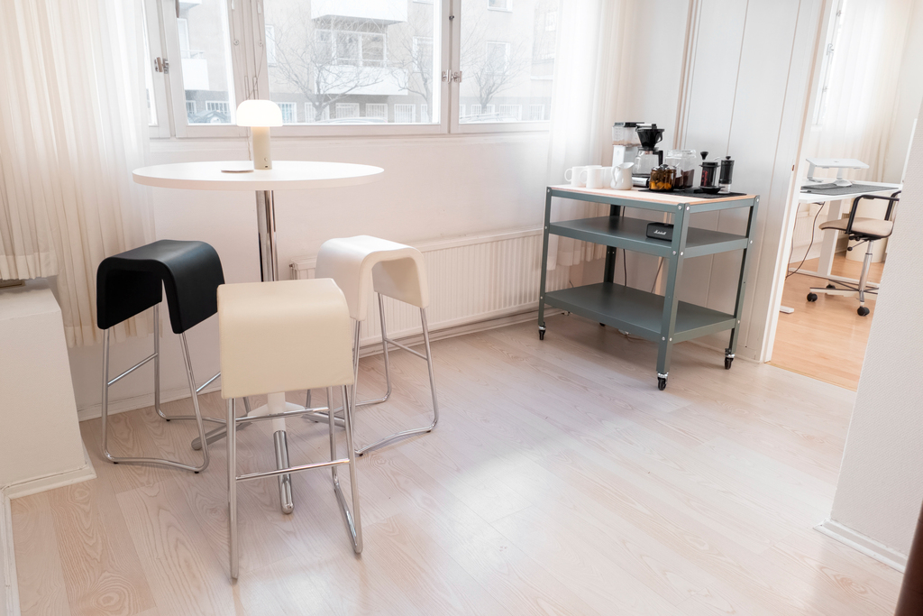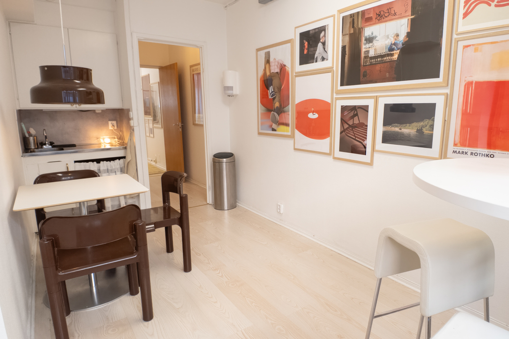 Lokalen erbjuder även ett praktiskt kök/pentry med plats för matbord och stolar, utrustat med kylskåp och goda förvaringsmöjligheter. Ett större rum som gärna kan nyttjas som ytterligare arbetsyta eller kontorsrum beroende på behov.