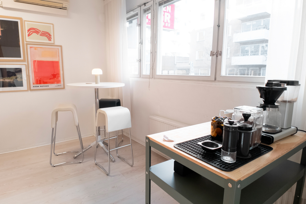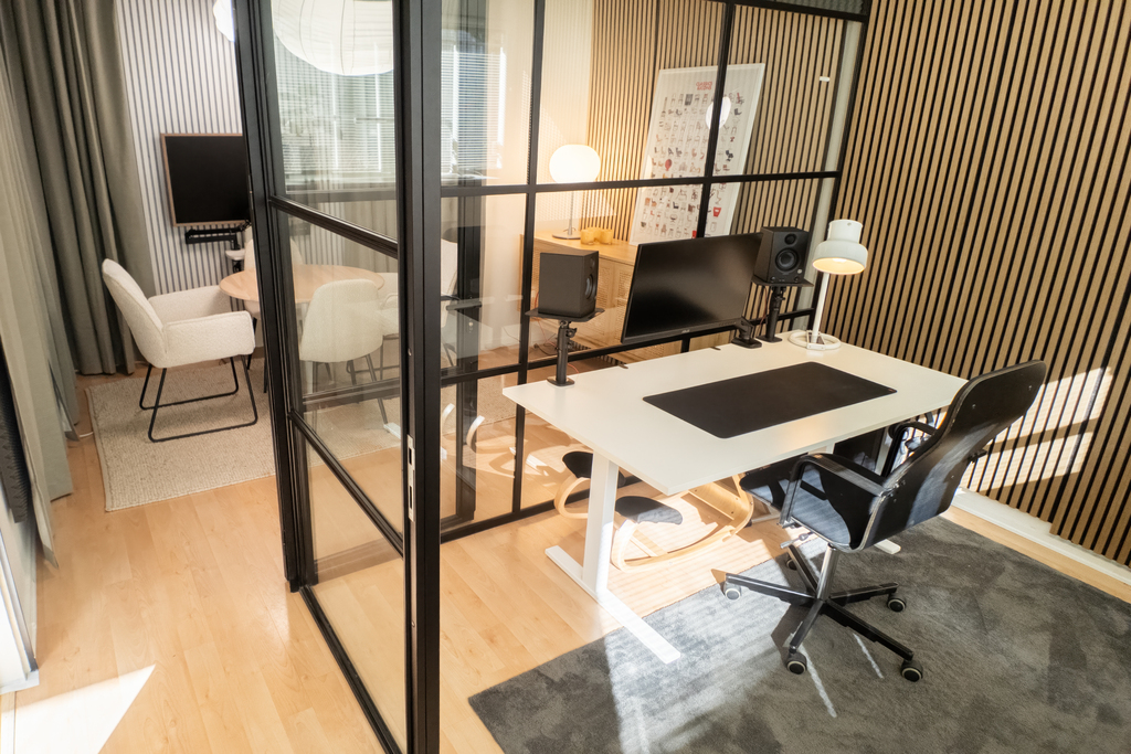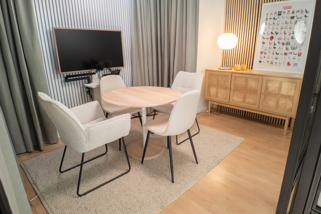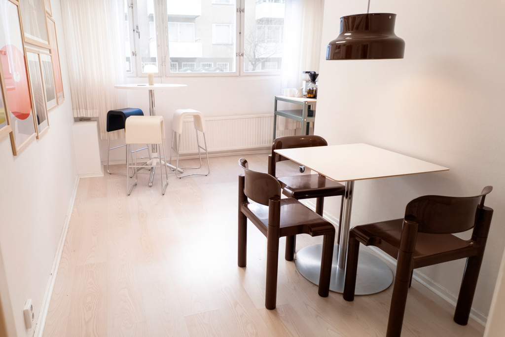Planlösningen är väl disponerad med ett stilrent mötes- eller konferensrum med moderna, renoverade ytskikt. Rummet avgränsas med en industriglasvägg som tillsammans med panelväggar skapar en samtida och inspirerande känsla. Därutöver finns tre separata kontorsrum, samtliga med plats för upp till två arbetsplatser per rum.