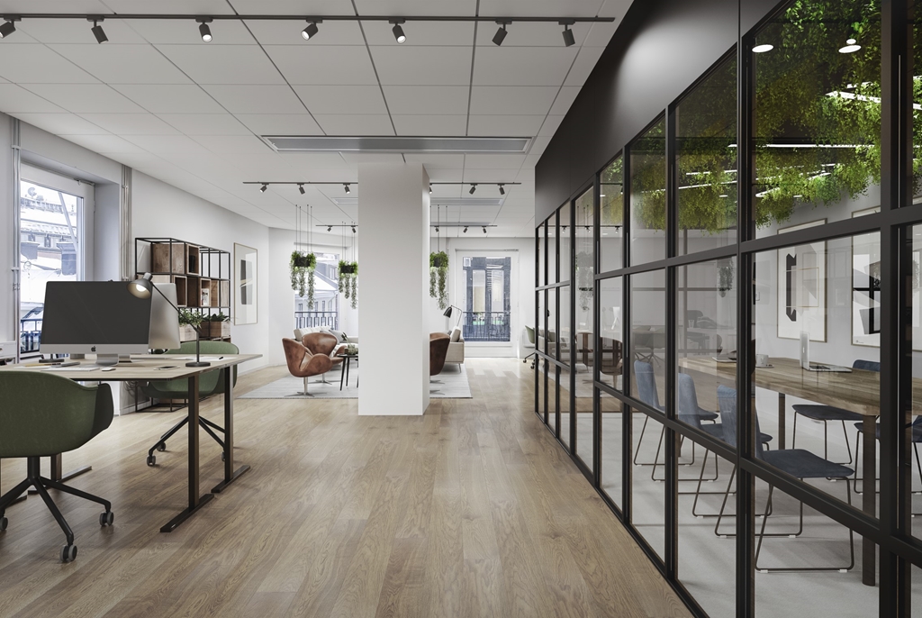 I denna lokal går det göra om stora delar för att skapa er drömplats med allt vad det moderna och lyxiga kontoret behöver.