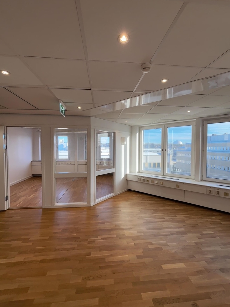 Lokalen erbjuder en effektiv planlösning med 5 eller 6 kontorsrum samt ett eventuellt mötesrum beroende på hur fördelningen görs. Här finns gott om ljusinsläpp och en trevlig arbetsmiljö som passar både det mindre företaget eller det team som söker en kombination av enskilda rum och gemensamma ytor. Lokalen finner vi på plan 5 i huset.
