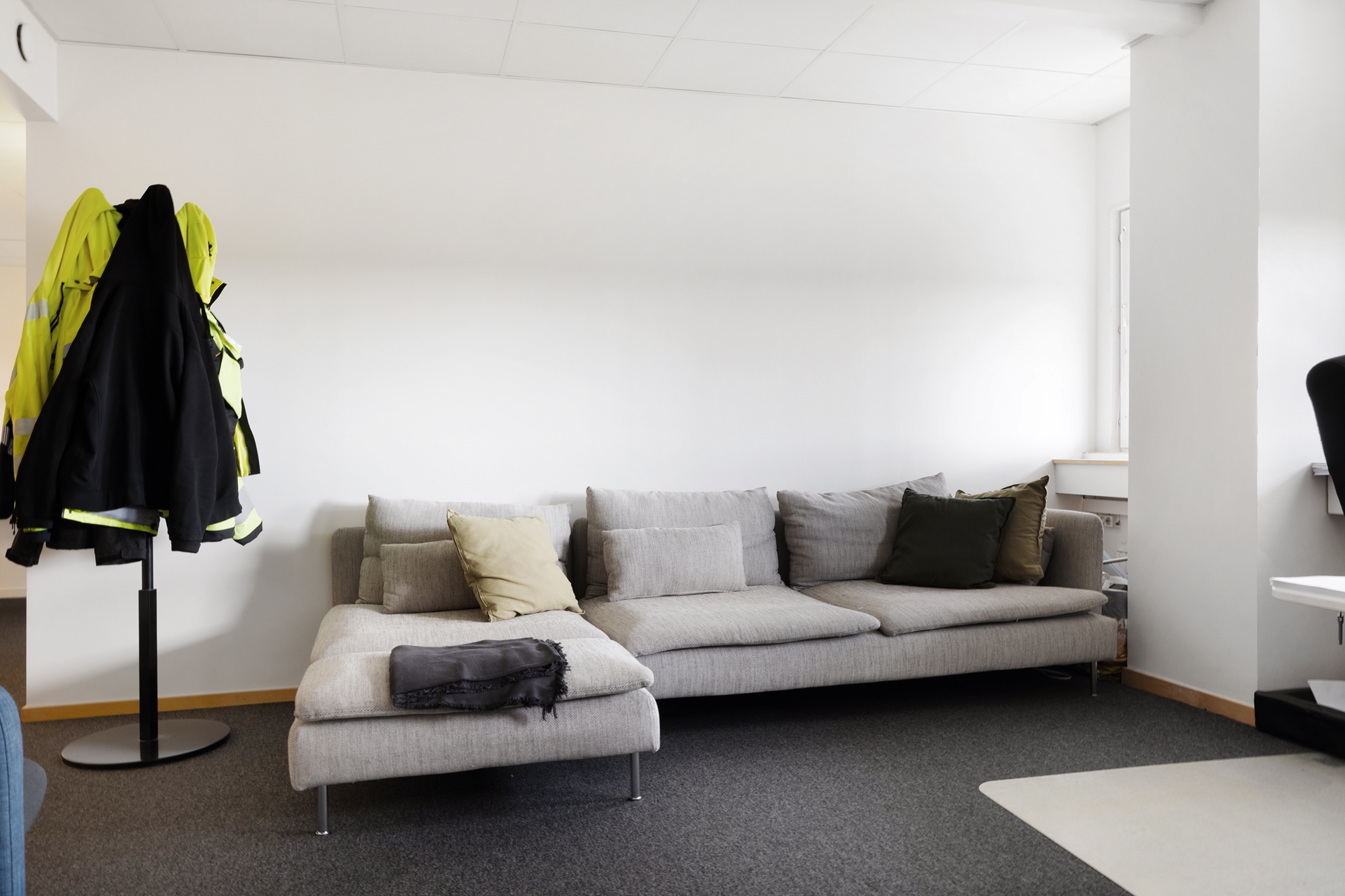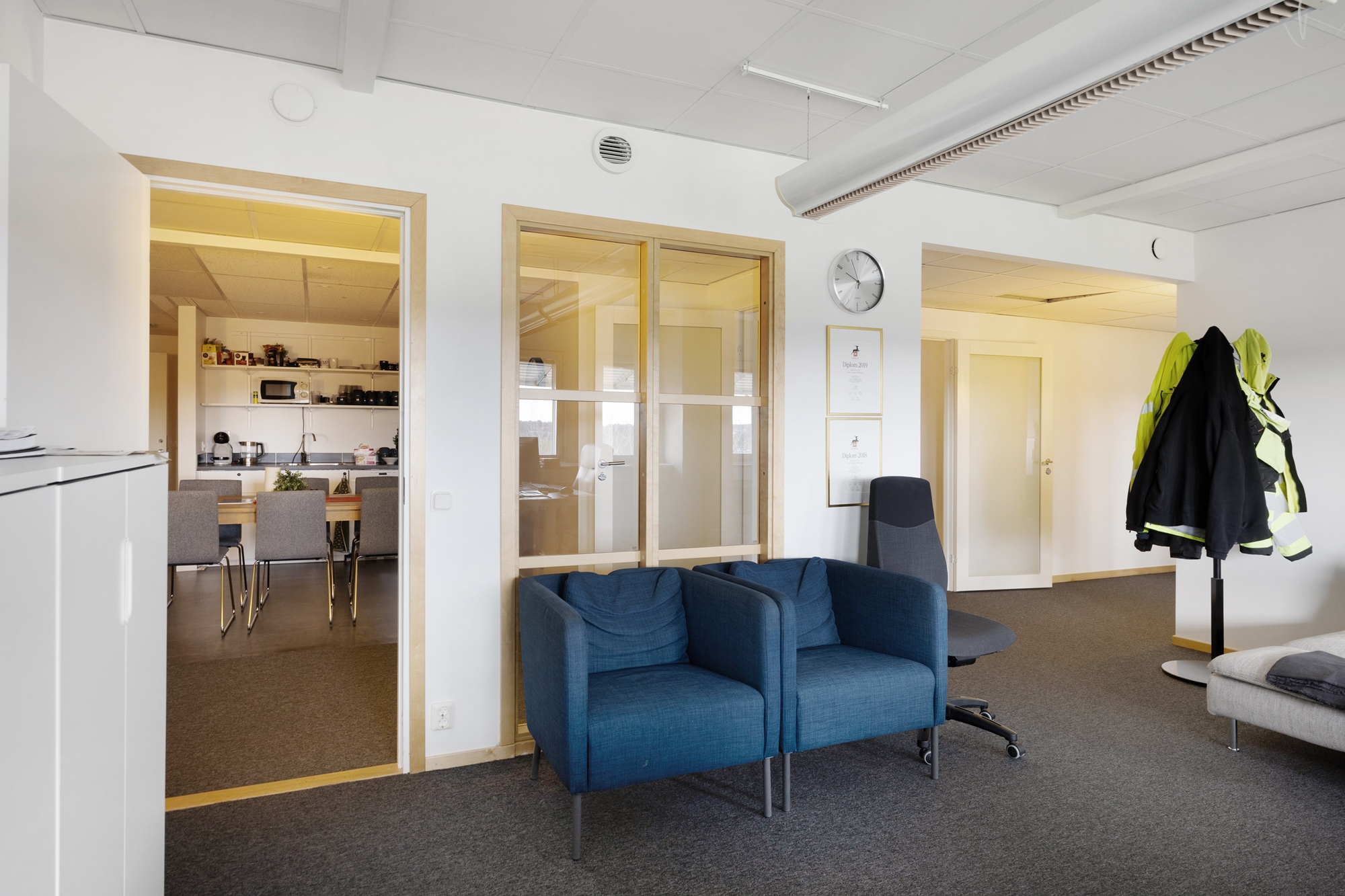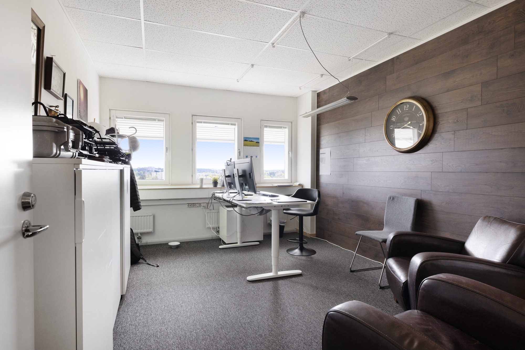 Lokalen erbjuder en trivsam arbetsmiljö med stora fönster som släpper in gott om dagsljus in i kontoret.
