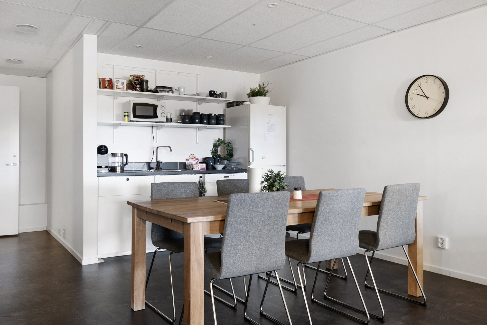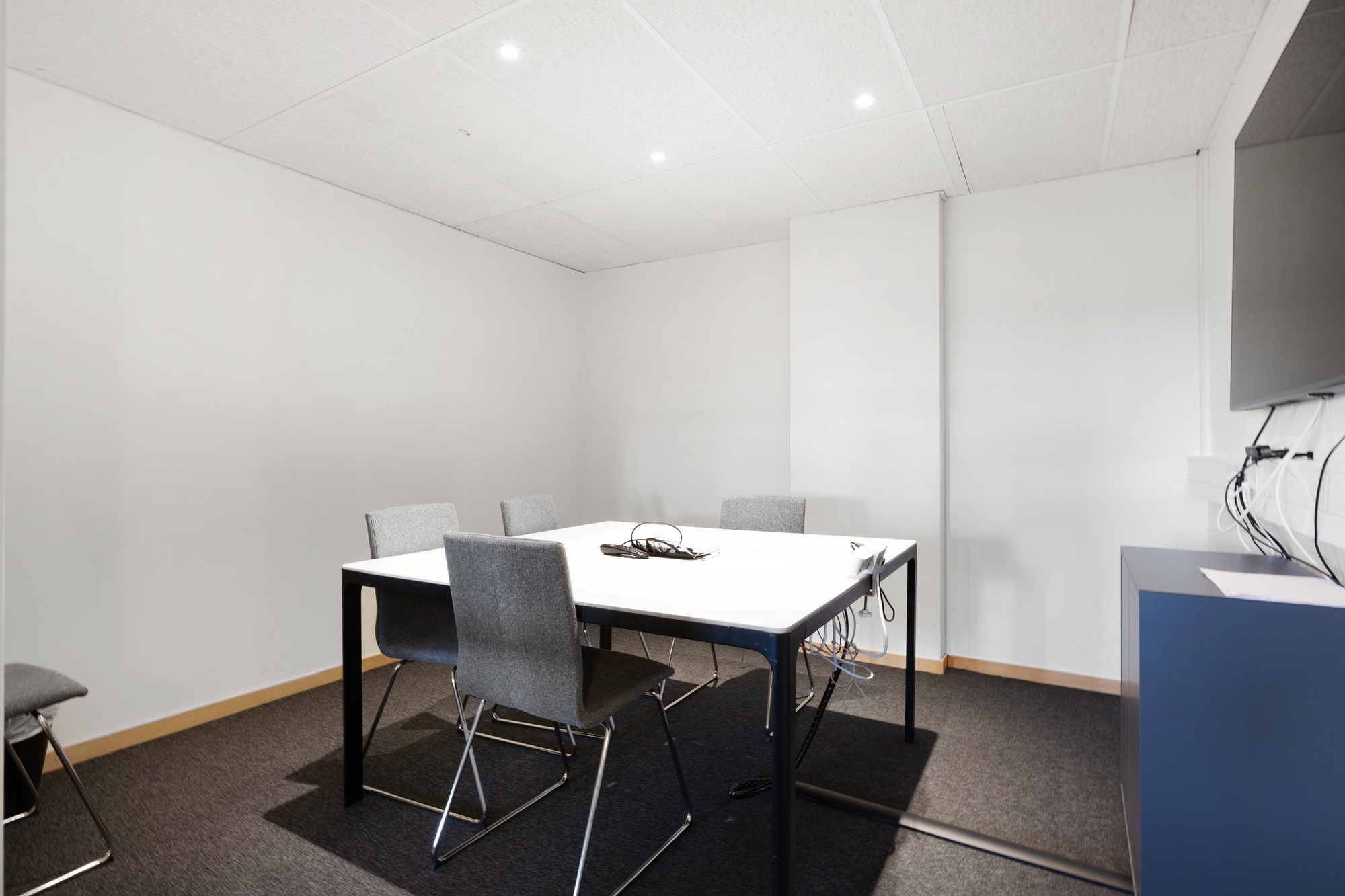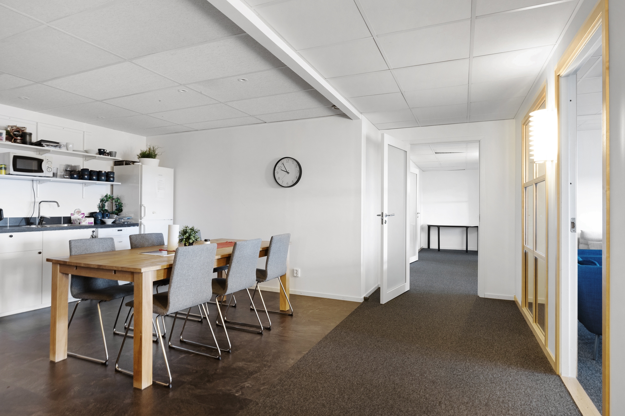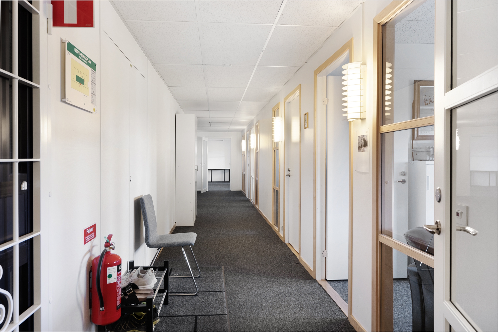 Lokalen erbjuder en trivsam arbetsmiljö med stora fönster som släpper in gott om dagsljus in i kontoret.