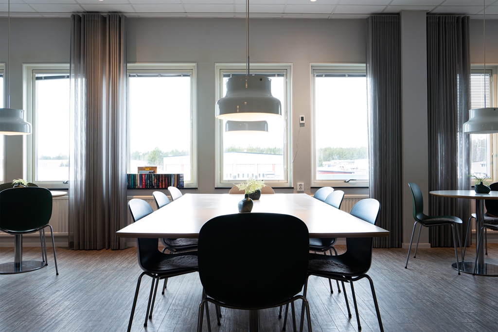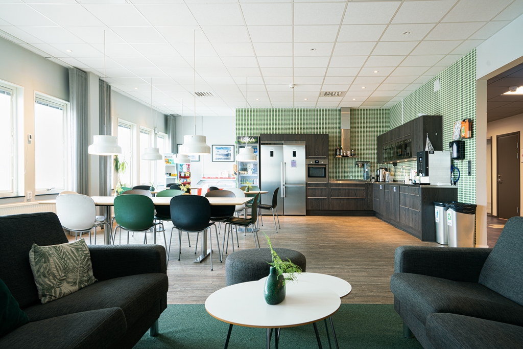 I direkt anslutning till kontorsytan finns gemensamt kök, fikarum, wc och konferensrum tillgängligt.