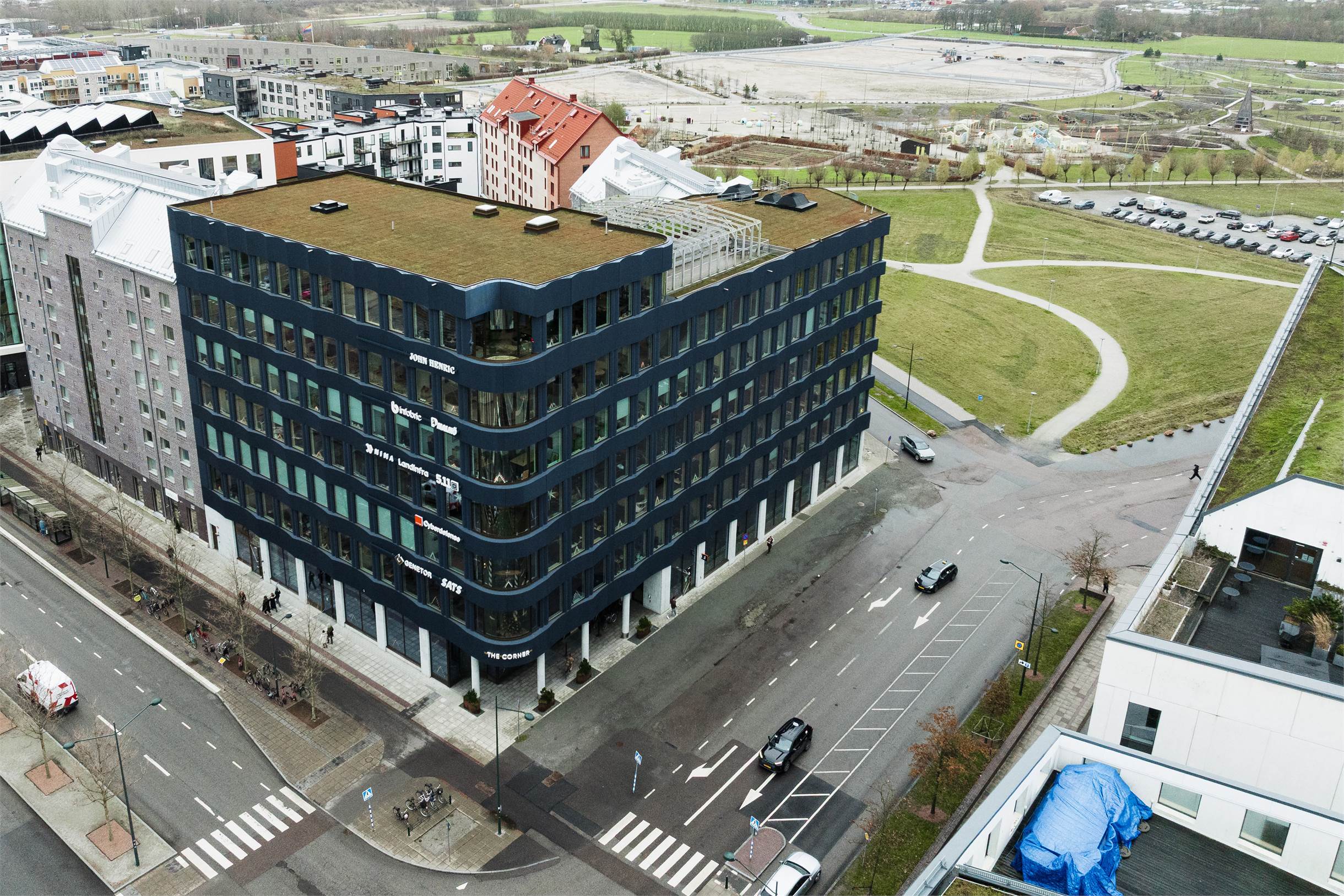Takterrassen är självklar. Den gröna innergården diskret. Reformer Pilates och SATS finns i huset. Genetor och John Henric som grannar. Tvärs över gatan ligger The Point – hotell, restaurang, bar och baristakaffe. Emporia och ICA runt hörnet.