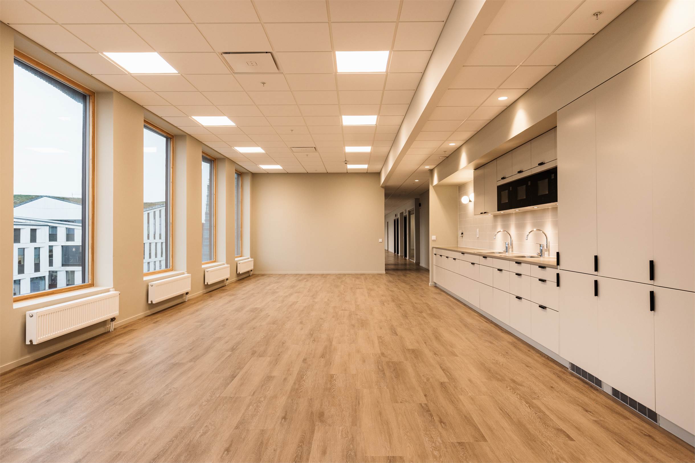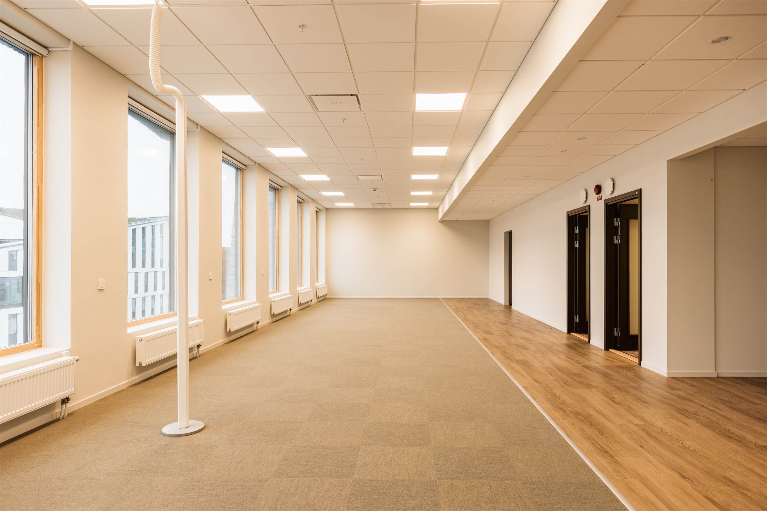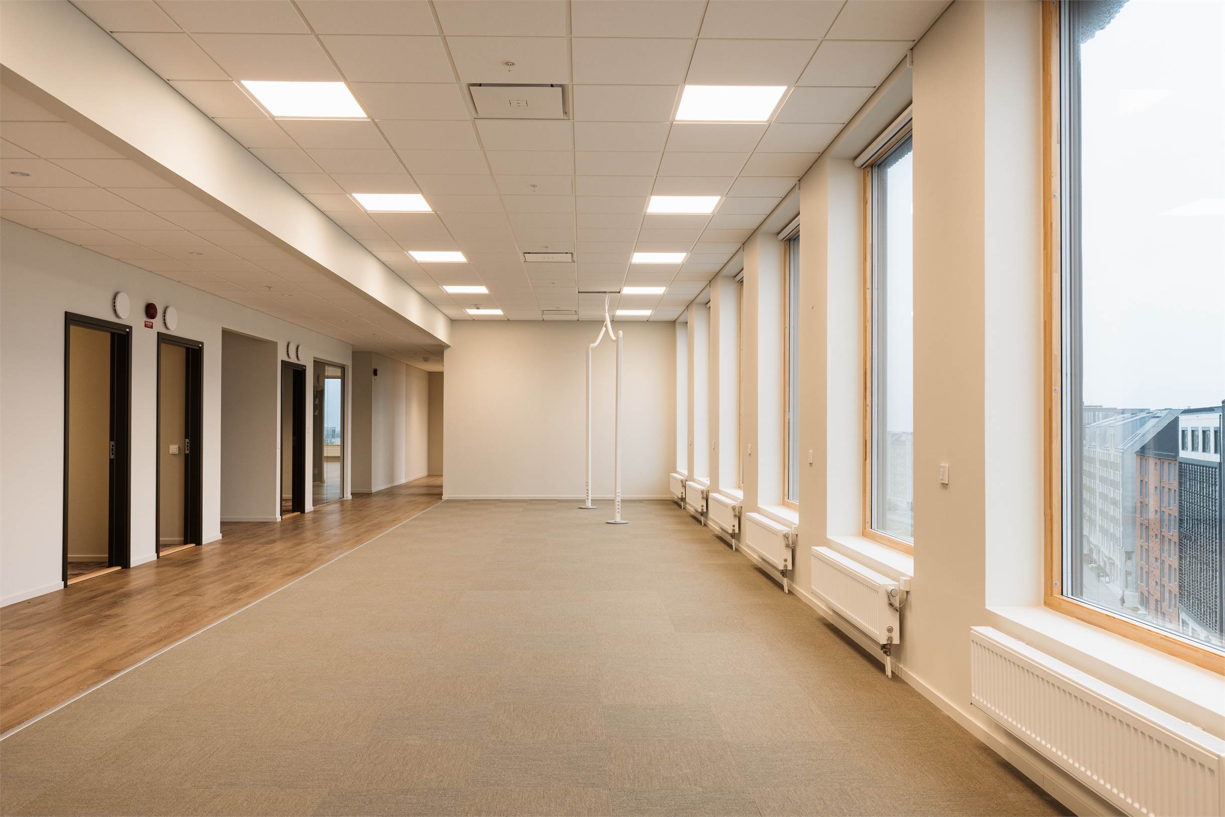 Kontoret är genomgående utformat med harmoniska och noggrant utvalda material och kulörer. 418 kvadratmeter inflyttningsklar yta, men som också kan formas efter behov. Mötesrum och fokusytor. Öppet eller uppdelat – ni bestämmer.