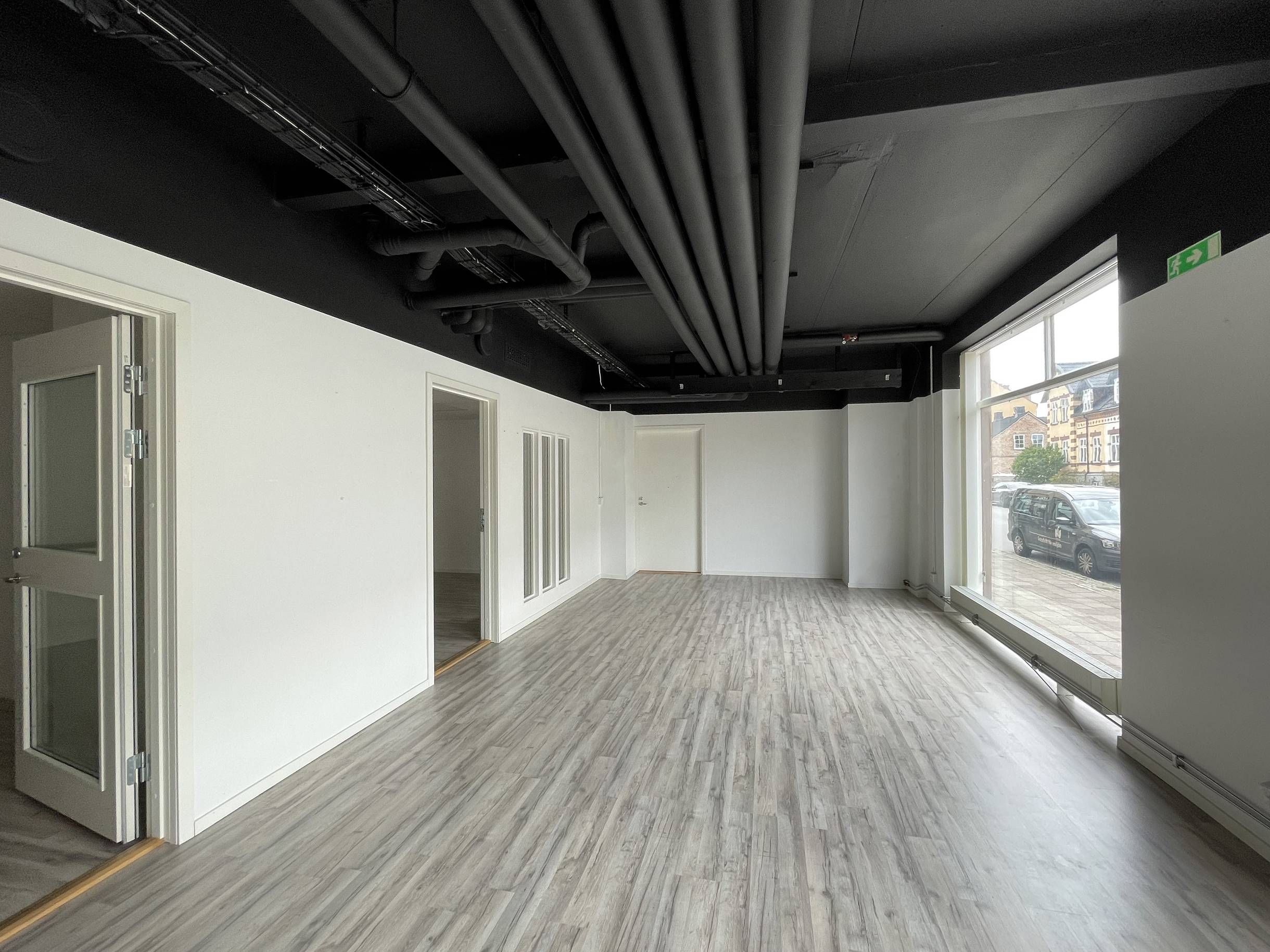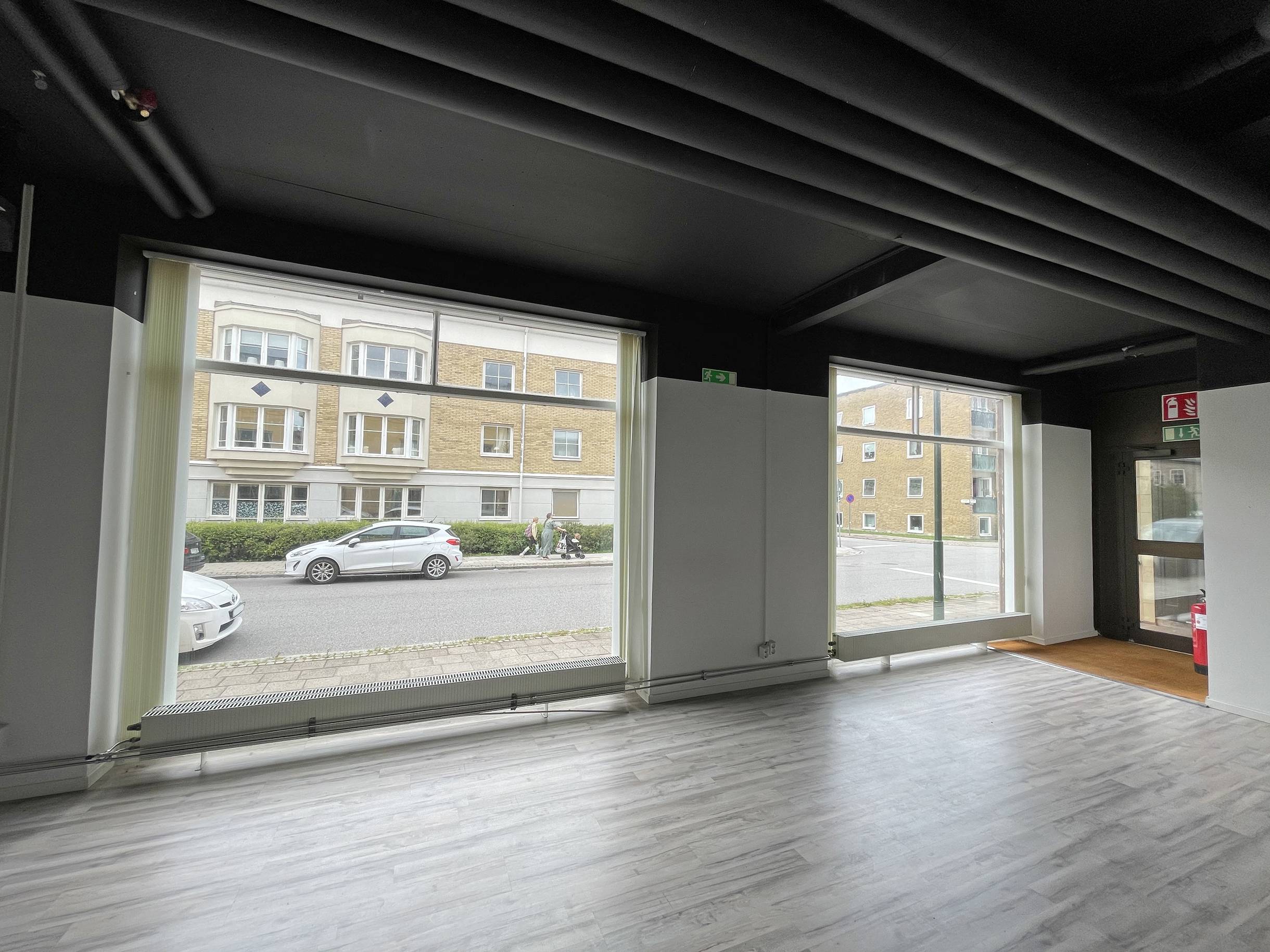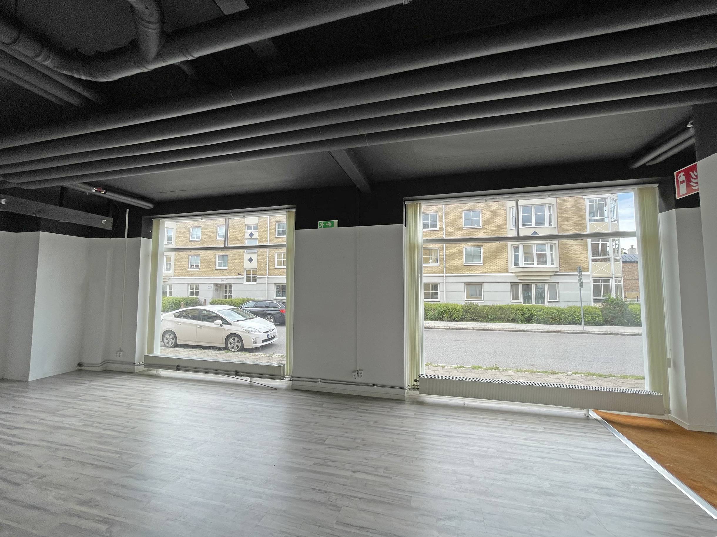 Denna lokal har ljus och öppen känsla tack vare rymlig takhöjd och ljusflödet genom de stora fönsterna, som även ger bra exponering av er verksamhet.