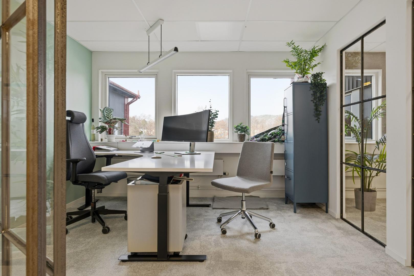 Det trivsamma kontoret omfattar 108 kvm, ligger på våning 2 och nås via husets trapphus från lagret. Du möts av ljusa och stilfullt inredda kontorsrum, konferensrum och pentry. Här finns goda möjligheter att anpassa ytorna efter just din verksamhets specifika behov.