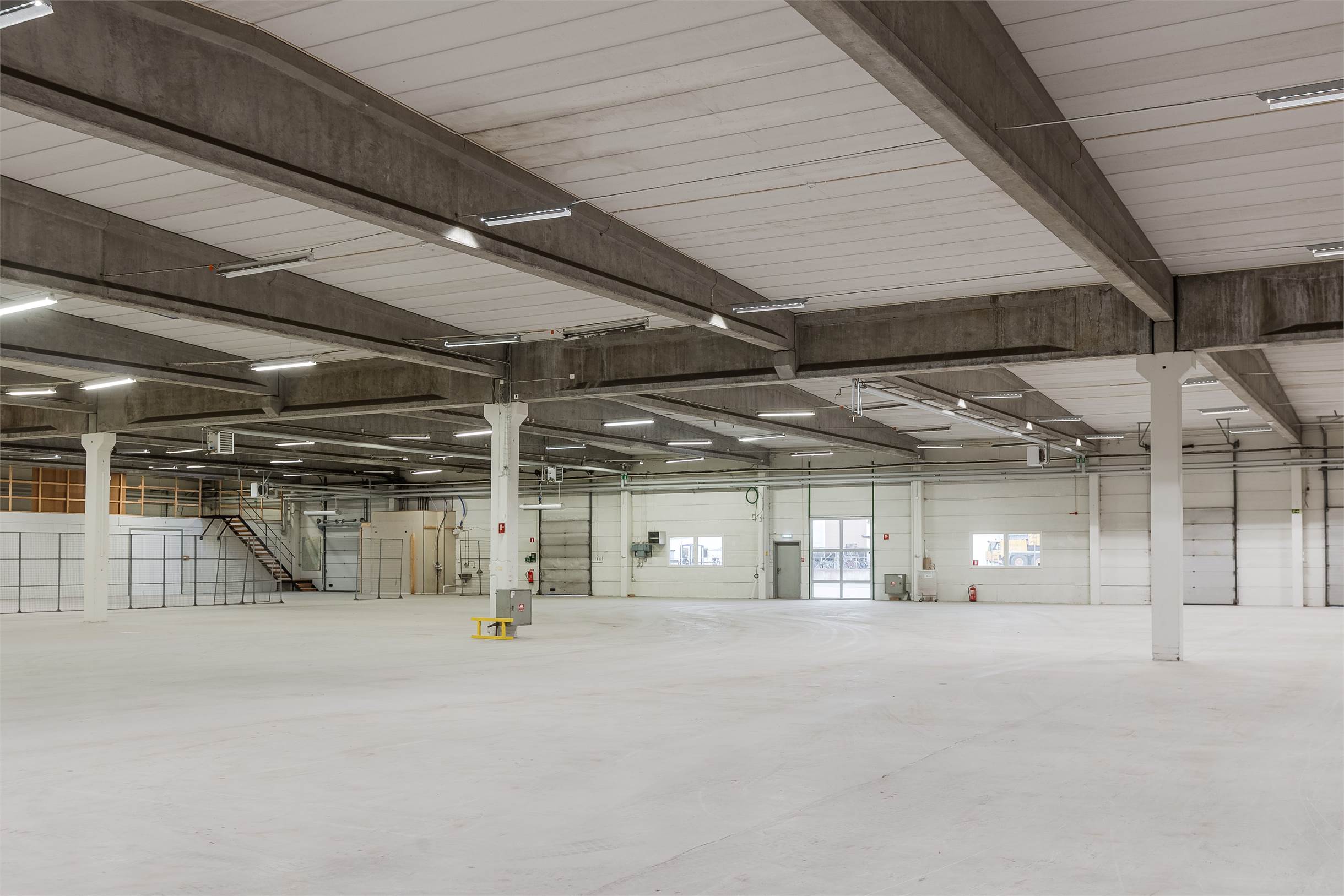• Stort lagerutrymme: 3 627 kvm med öppen planlösning och 5,9 meter i takhöjd.
