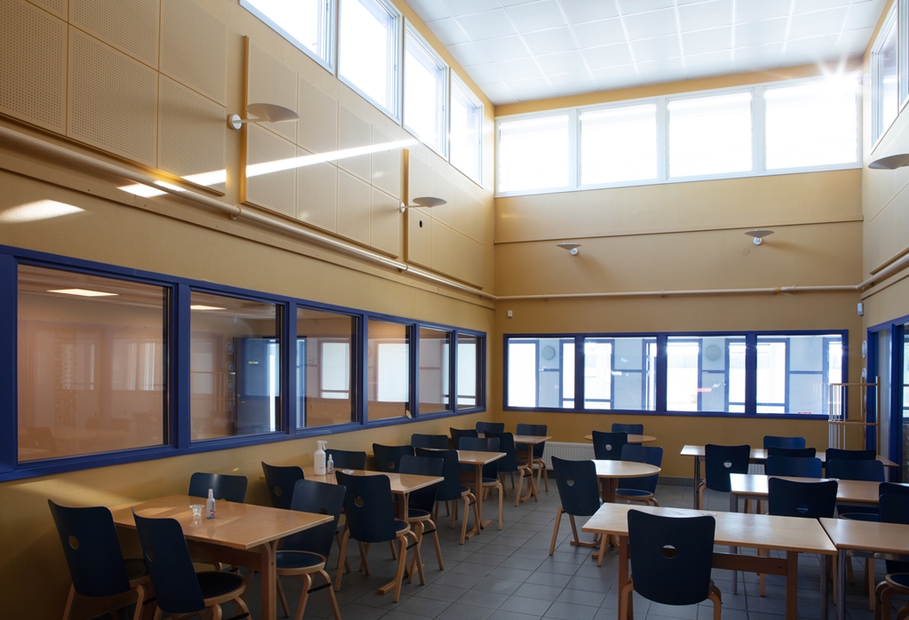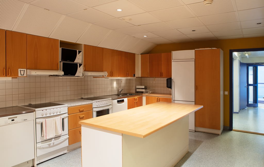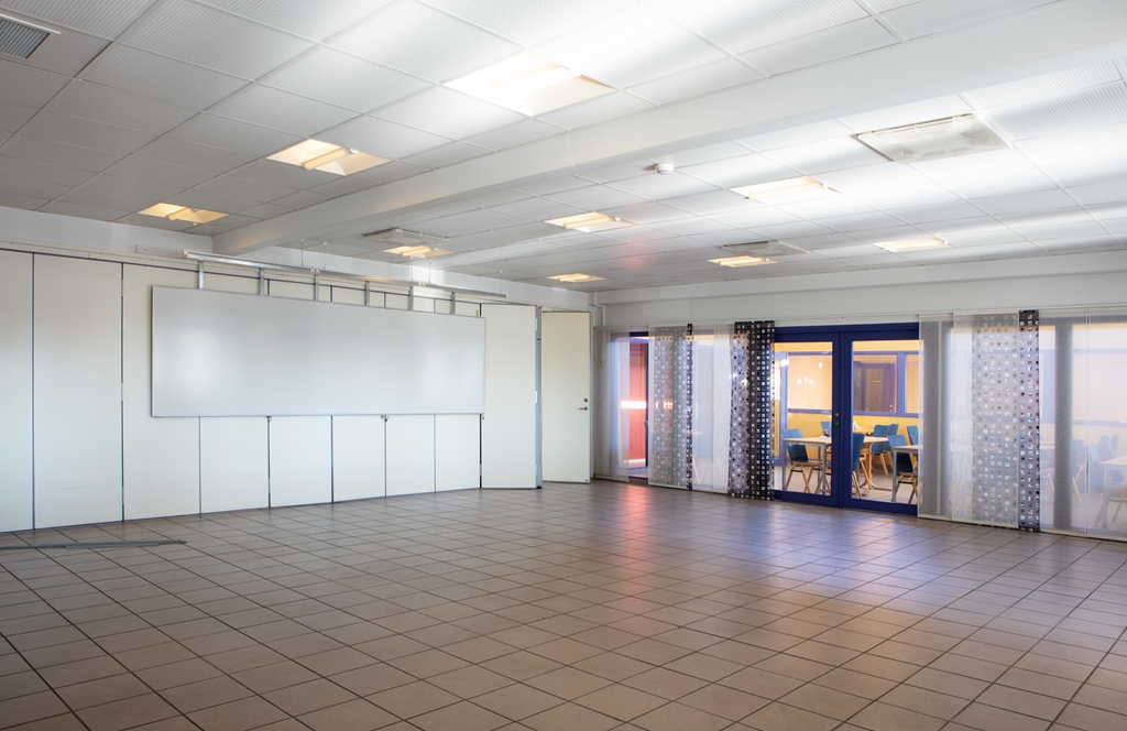 En stor matsal finns centralt placerad i lokalen. Dessutom finns det goda möjligheter att anpassa ytorna efter era specifika behov och önskemål.