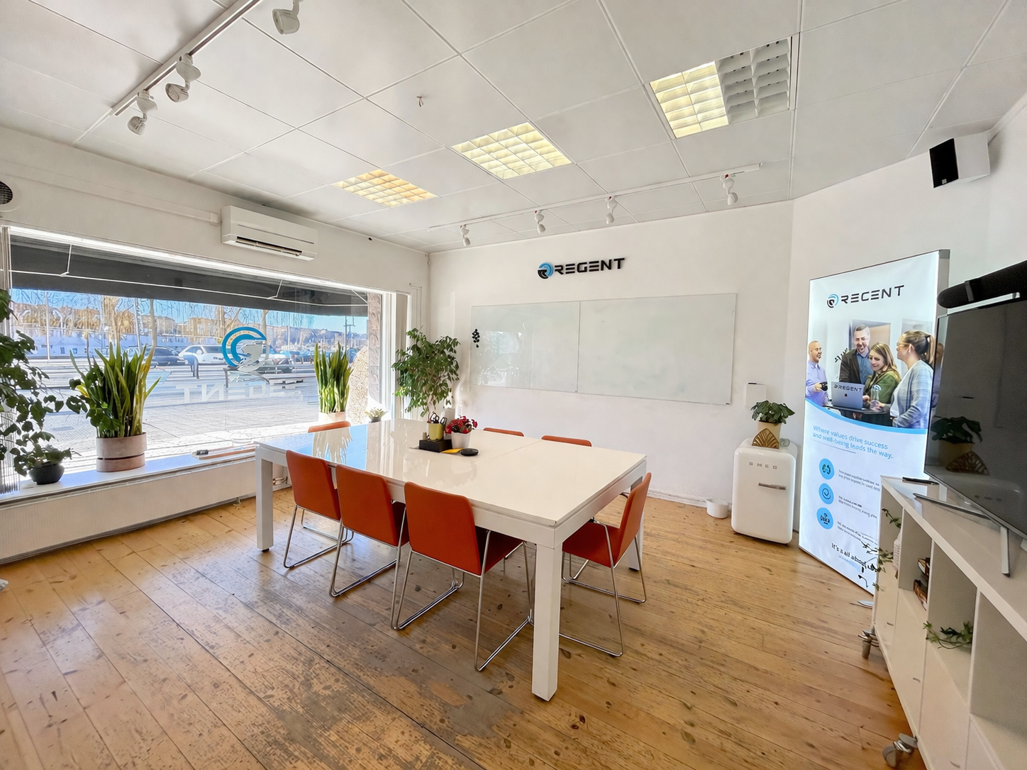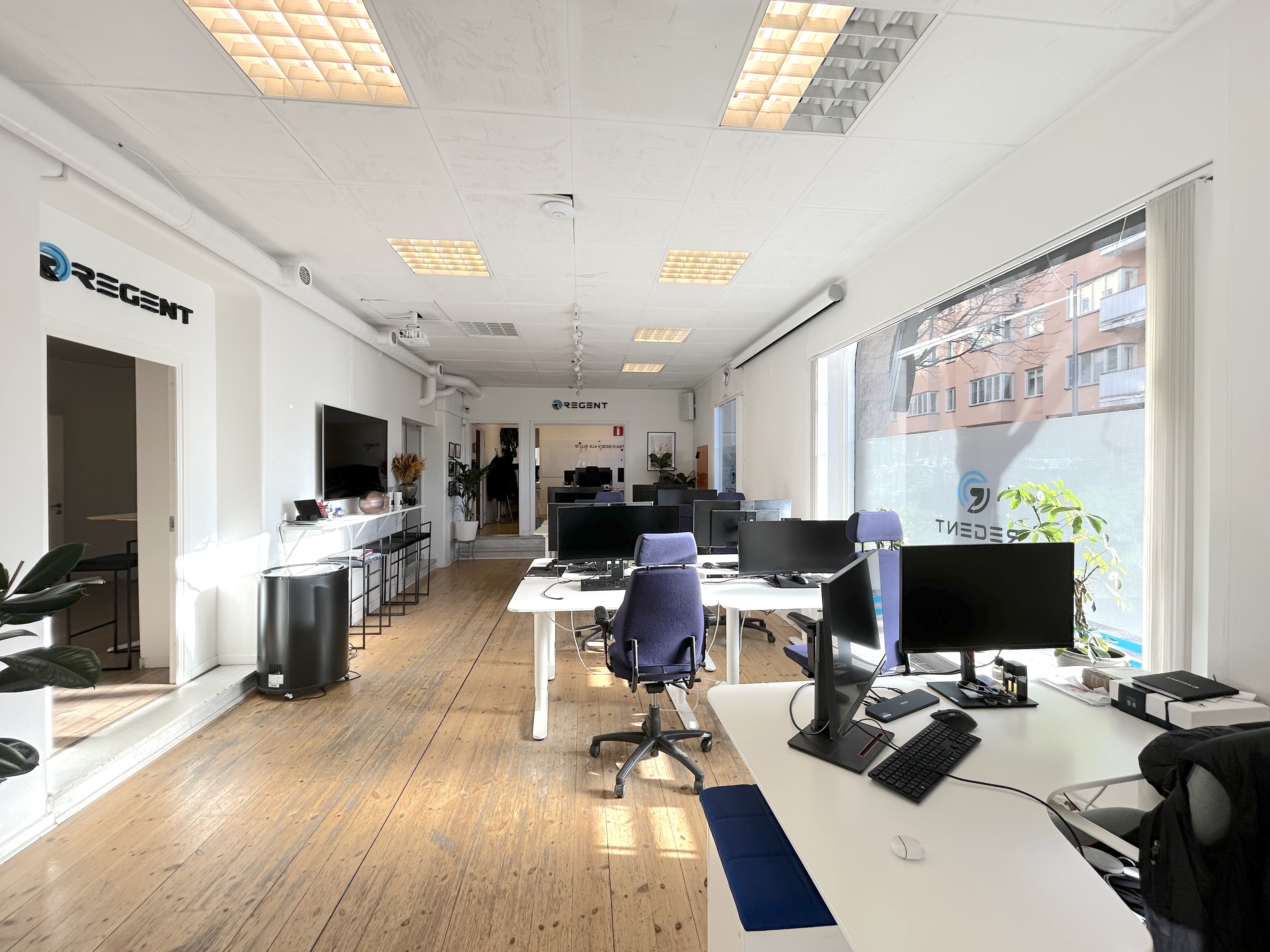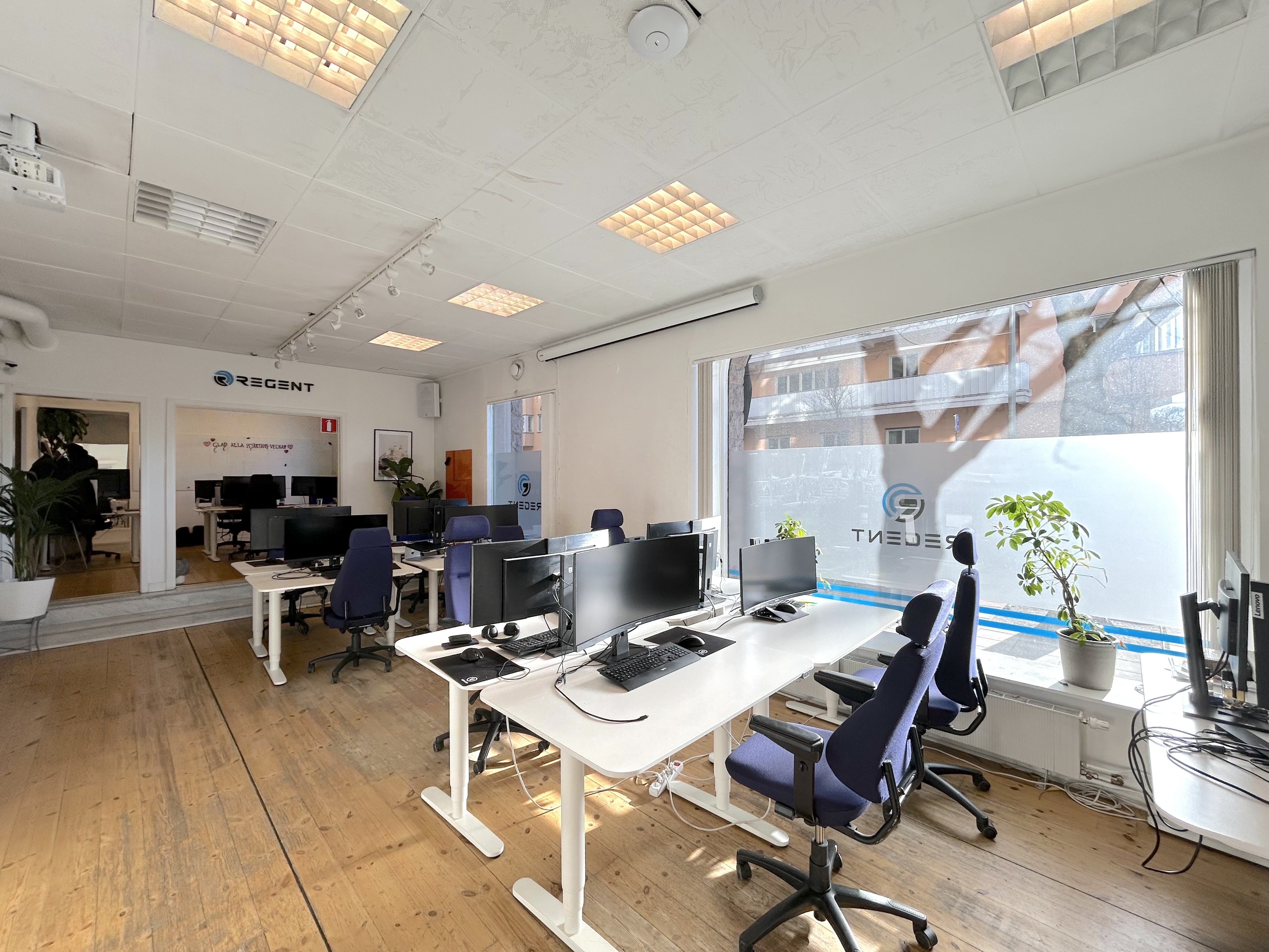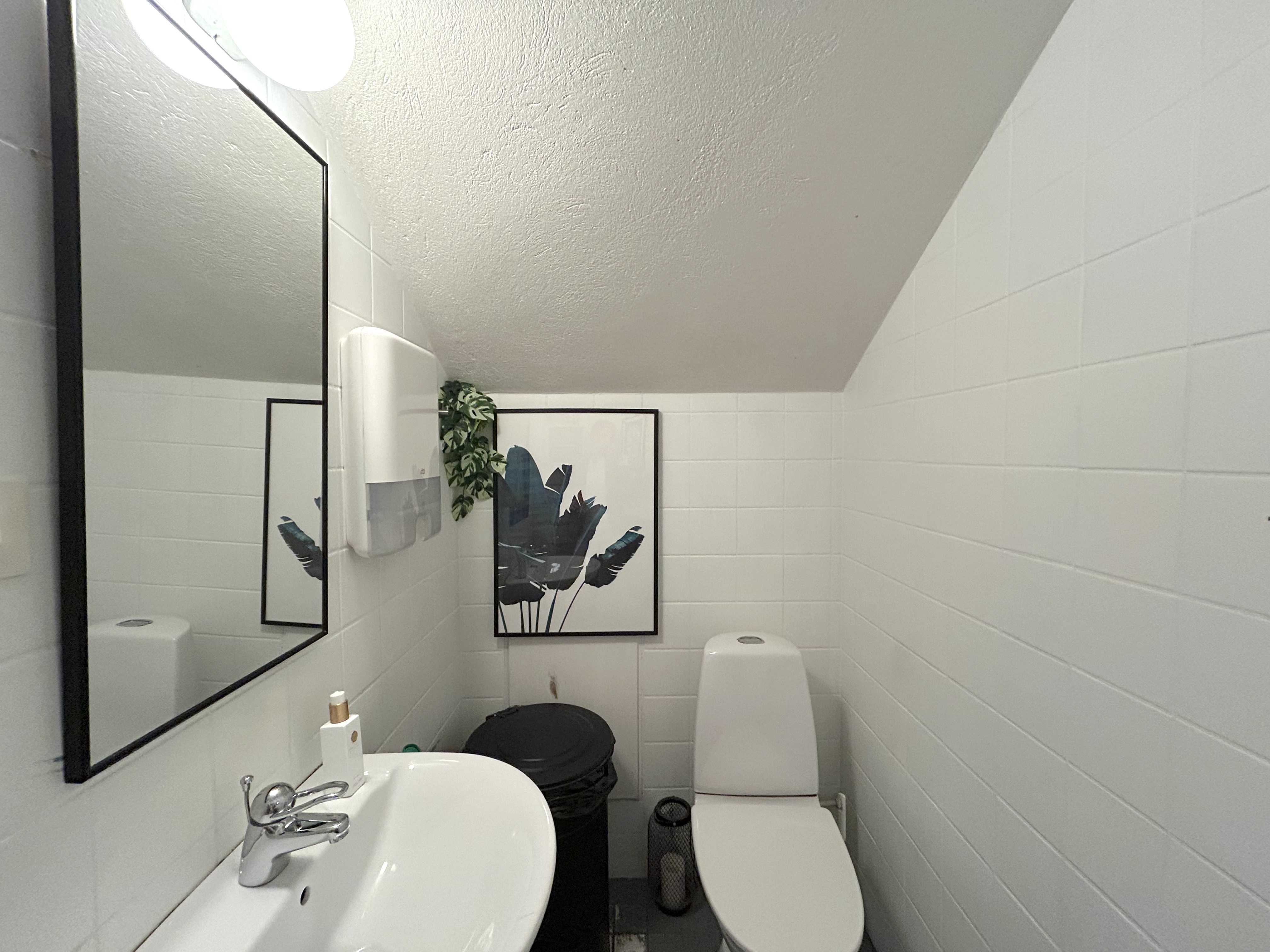 Lokalen omfattar cirka 130 kvm och används idag som kontor men har tidigare varit butik, vilket öppnar upp för flera typer av verksamheter. Planlösningen är både funktionell och trivsam med en välkomnande entré, ett större öppet rum, flera mindre rum samt ett generöst konferensrum. Här finns även ett rymligt pentry och wc. Kombinationen av rymd, ljus och läge skapar en miljö som känns både professionell och varm på samma gång.