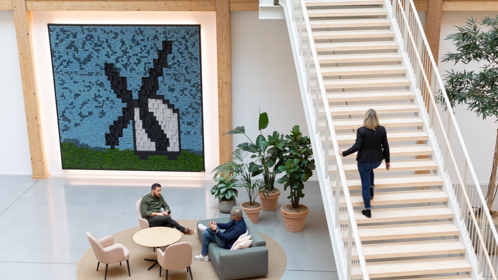 Byggnaden är trippelcertifierad, bland annat med WELL – vilket innebär att människans välmående står i fokus.
