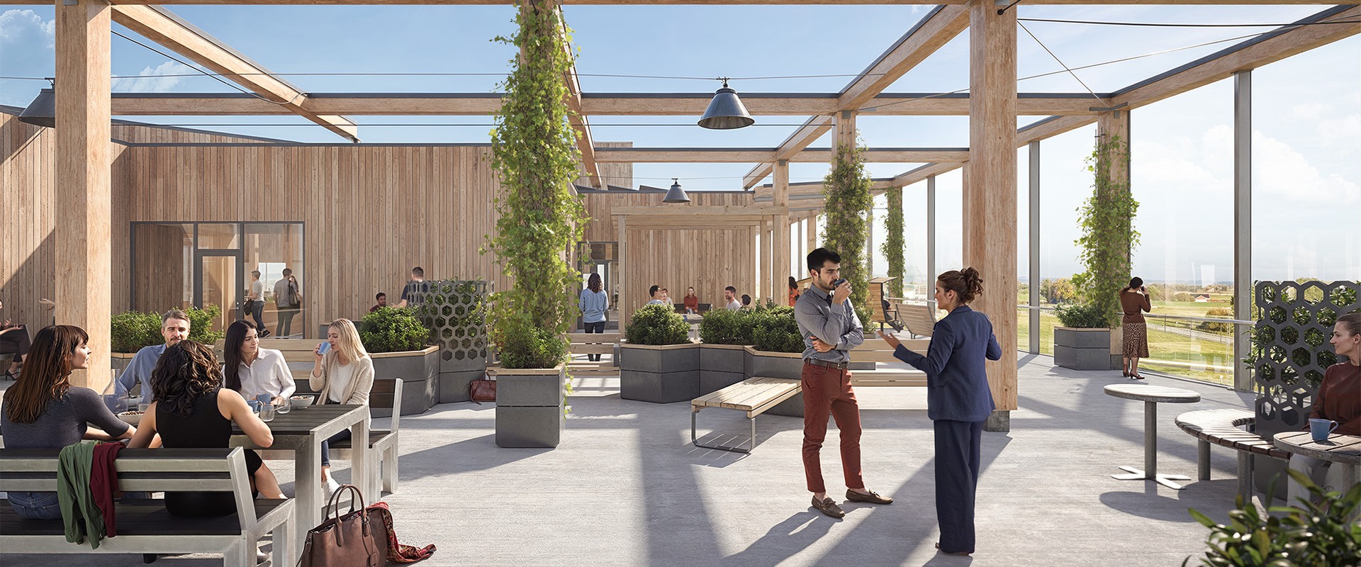 I bottenplan planerar vi för ett levande utbud av service, café och restaurangmiljö. Här kommer ni i framtiden att kunna äta lunch och beställa fika till era möten. I byggnaden finns trevliga loungeområden och en stor gemensam terrass i söderläge.