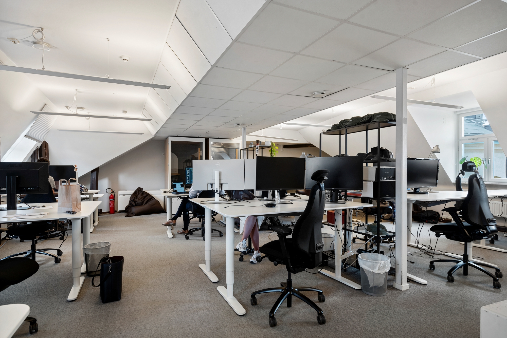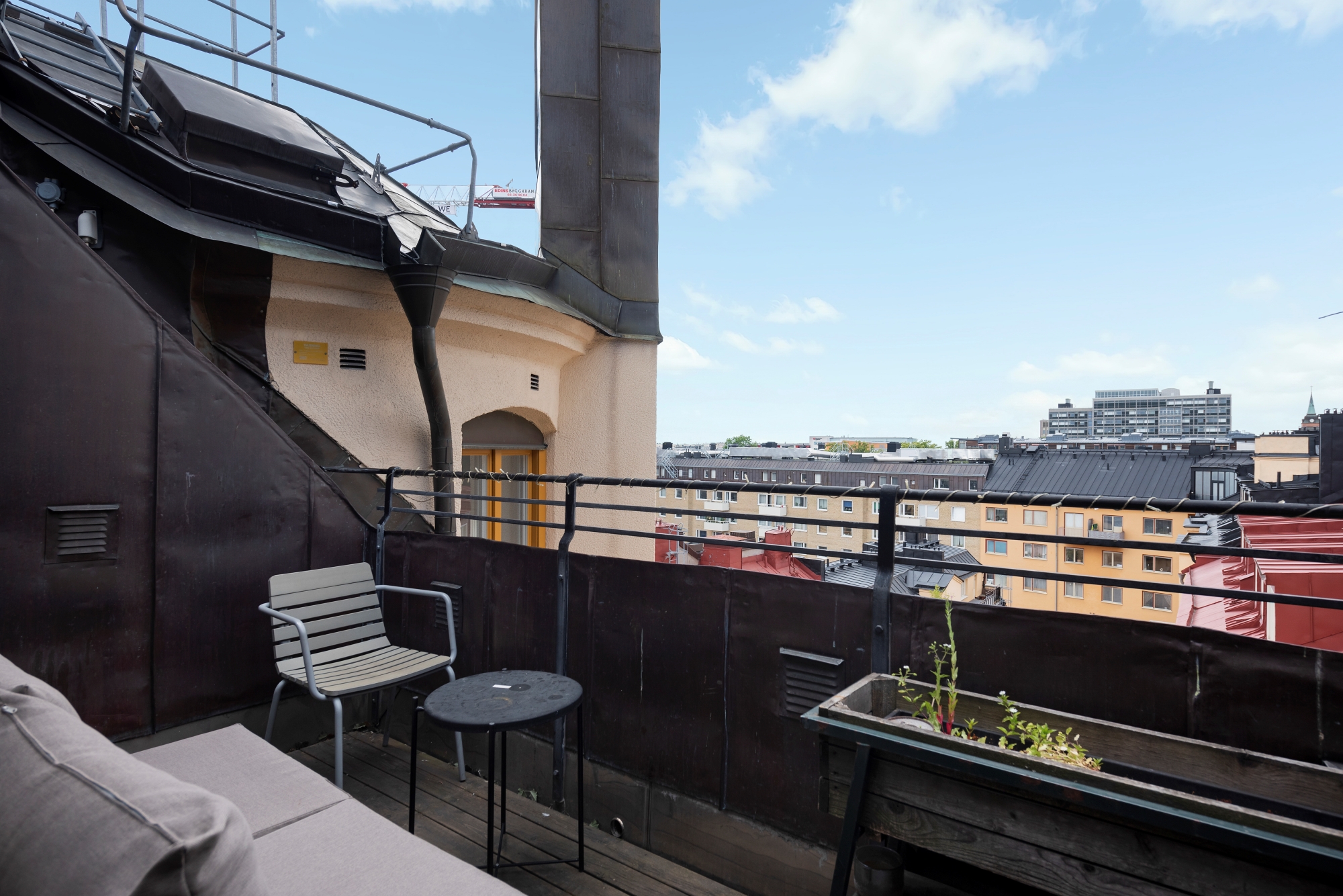 Mycket trevlig vindslokal i två plan med till största delen öppen planlösning. Egen terrass mot gården.