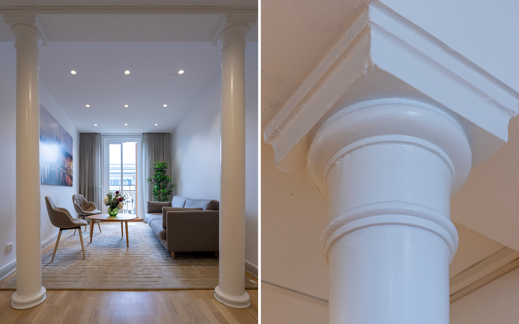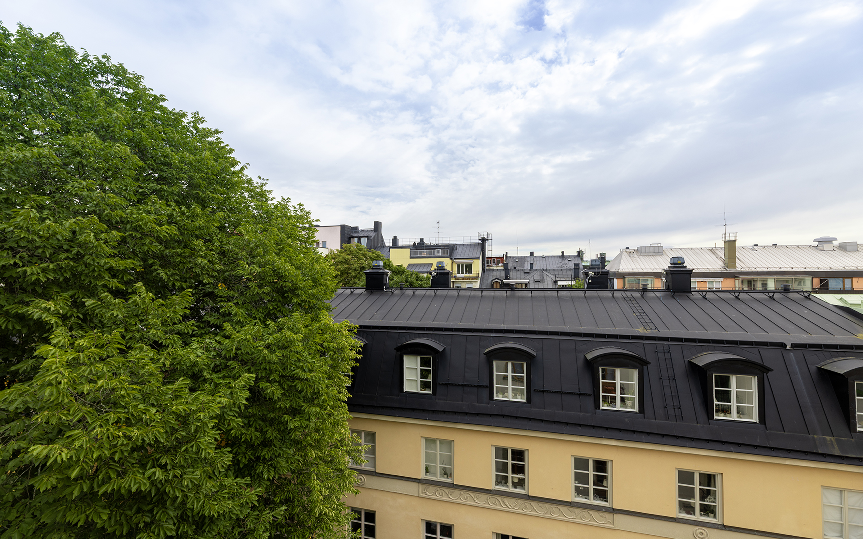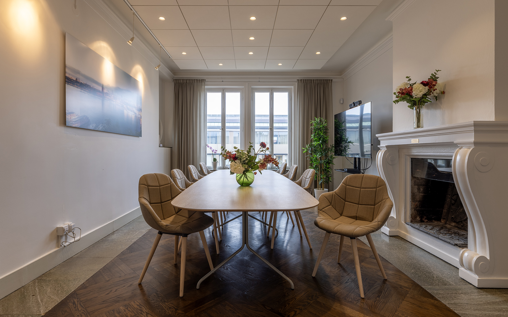 Högst upp i fastigheten erbjuds en unik lokal med sekelskiftesdetaljer, öppna spisar och fiskbensparkett – kombinerat med ett modernt pentry och stilrena färgval. Planlösningen rymmer både privata kontorsrum och ytor för mindre team, samt ett representativt mötesrum som imponerar. Ett kontor som förenar elegans med funktion och ett utmärkt val för företag som prioriterar integritet och vill verka i en exklusiv men anonym omgivning.