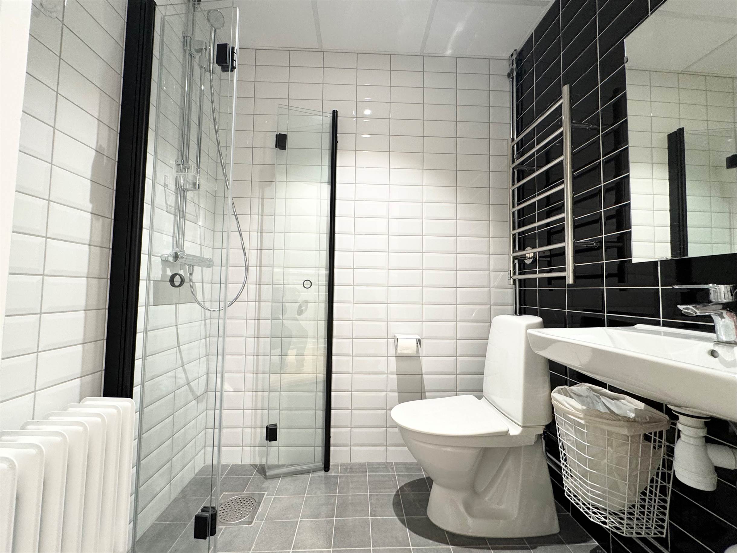 Lokalen håller genomgående hög standard med två stilfulla wc, varav en med dusch. Köket är påkostat och utrustat med modern maskinell utrustning. I köket finns utrymme för en matplats.
