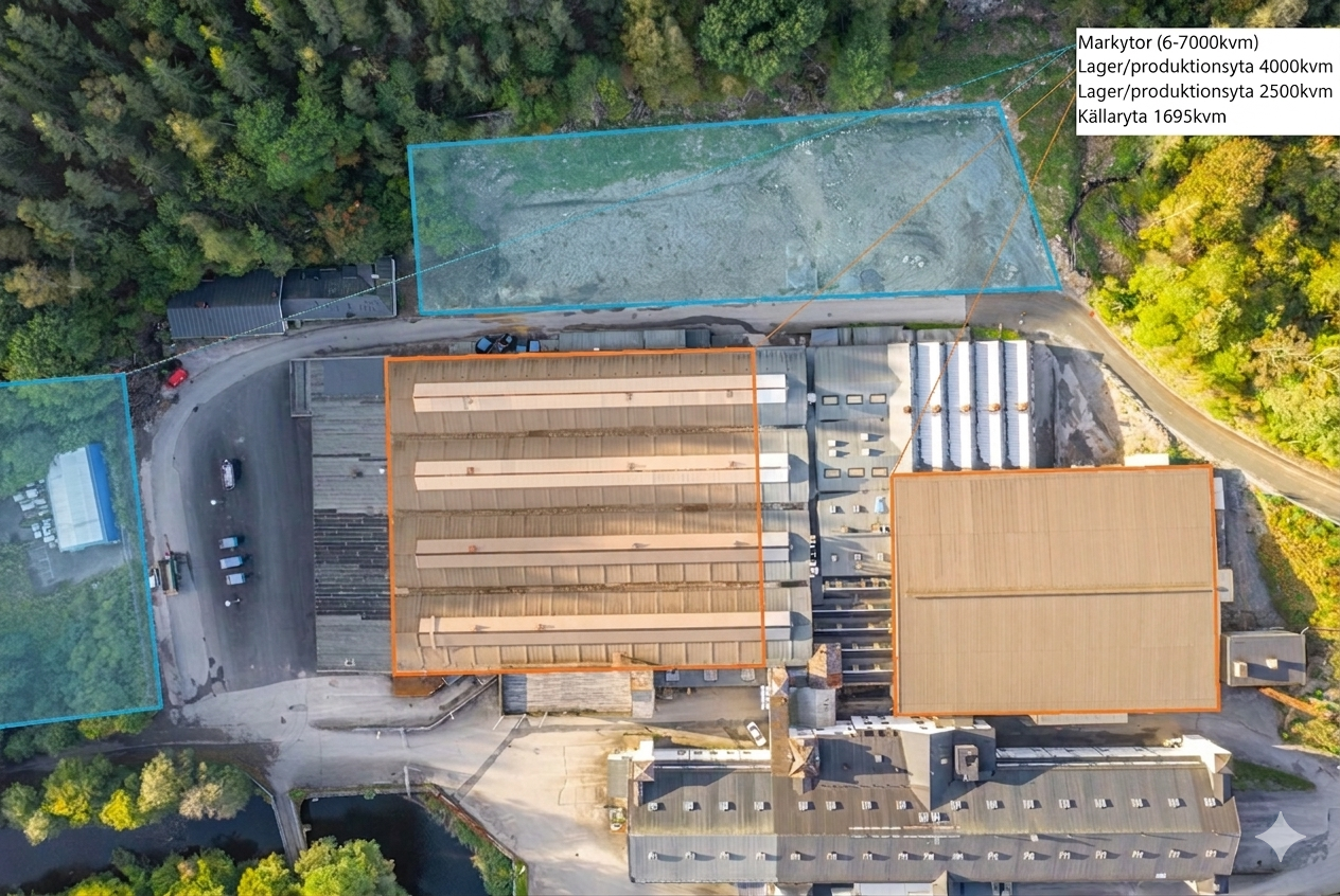 Cirka 8 195 kvm inomhusyta och 6 000 kvm markyta i Viskafors. En yta om cirka 4 000 kvm med 3 lastbryggor, markport, cirka 7 m takhöjd, omklädningsrum, toaletter och personalytor. En yta om cirka 2 500 kvm med cirka 5 m takhöjd och 2 lastbryggor. Källaryta om cirka 1 695 kvm med ramp och möjlighet att köra in bil. Passar för lager, logistik, produktion och annan ytkrävande verksamhet. Hyresnivå från 200 kr/kvm/år.