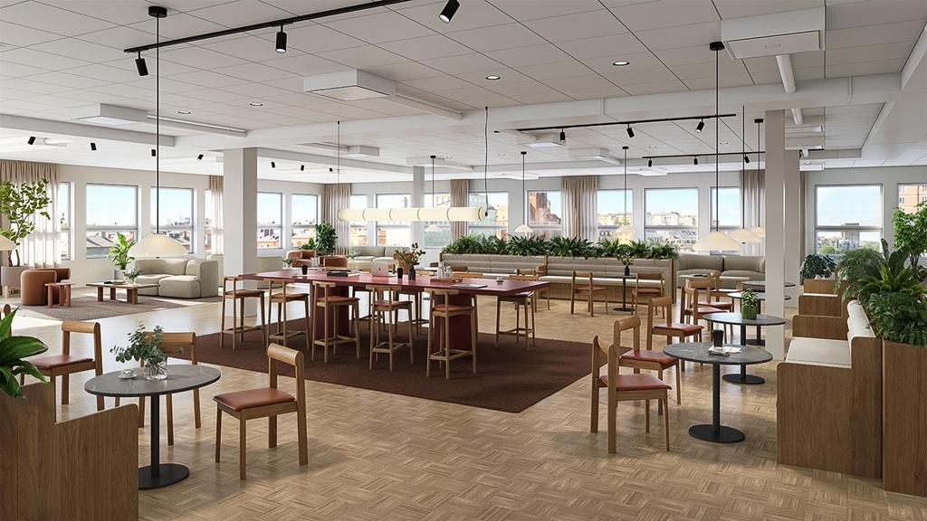 På våning 8 ligger den gemensamma takterrassen som är en härlig oas mitt i city med utsikt över staden, Karlbergssjön och Vasaparken. En perfekt plats för pauser, möten eller företagsevent.