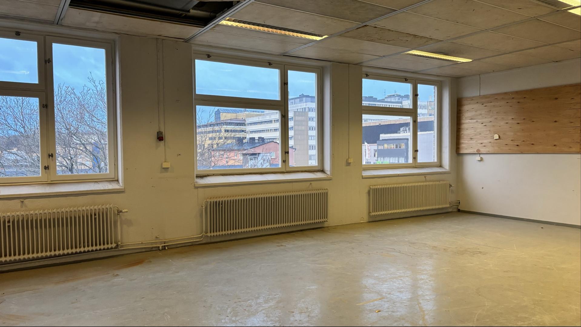 Ett rum med fönster